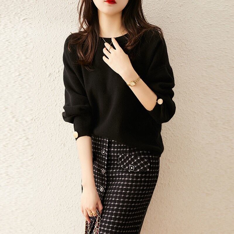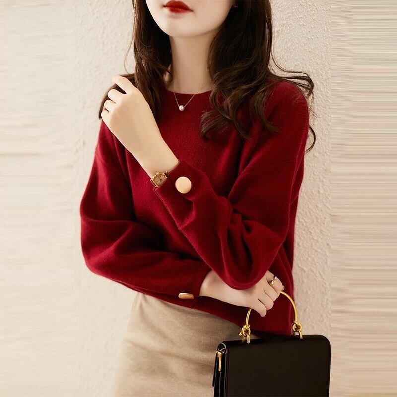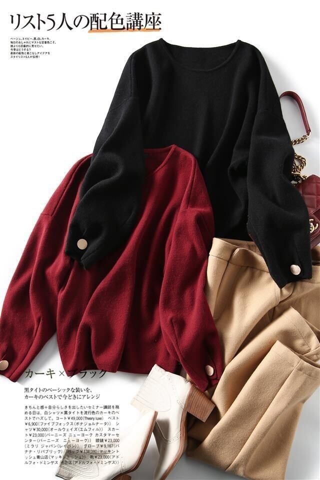 無地ニットボタン付きシンプルニット・セータートップス優雅エレガント通勤OLデートコーデ 【DL-1409】