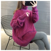 ハイネックセーター花柄カジュアルリゾートニットトップス 【DL-1414】