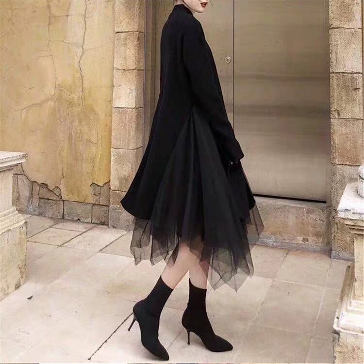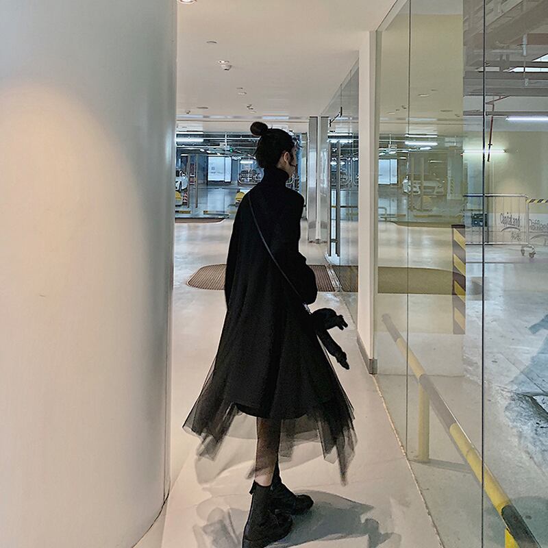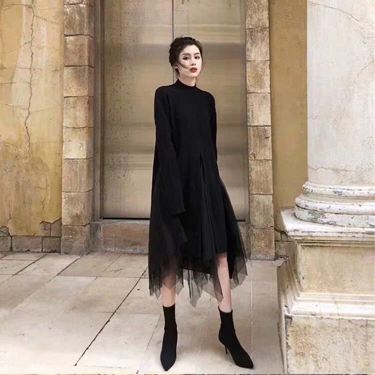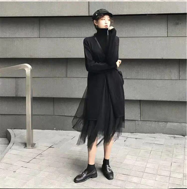 ブラックロングハイネックニットトップス&チュールスカート着回しセットアップ 【DL-1220】