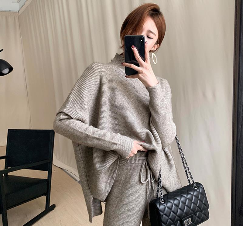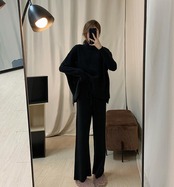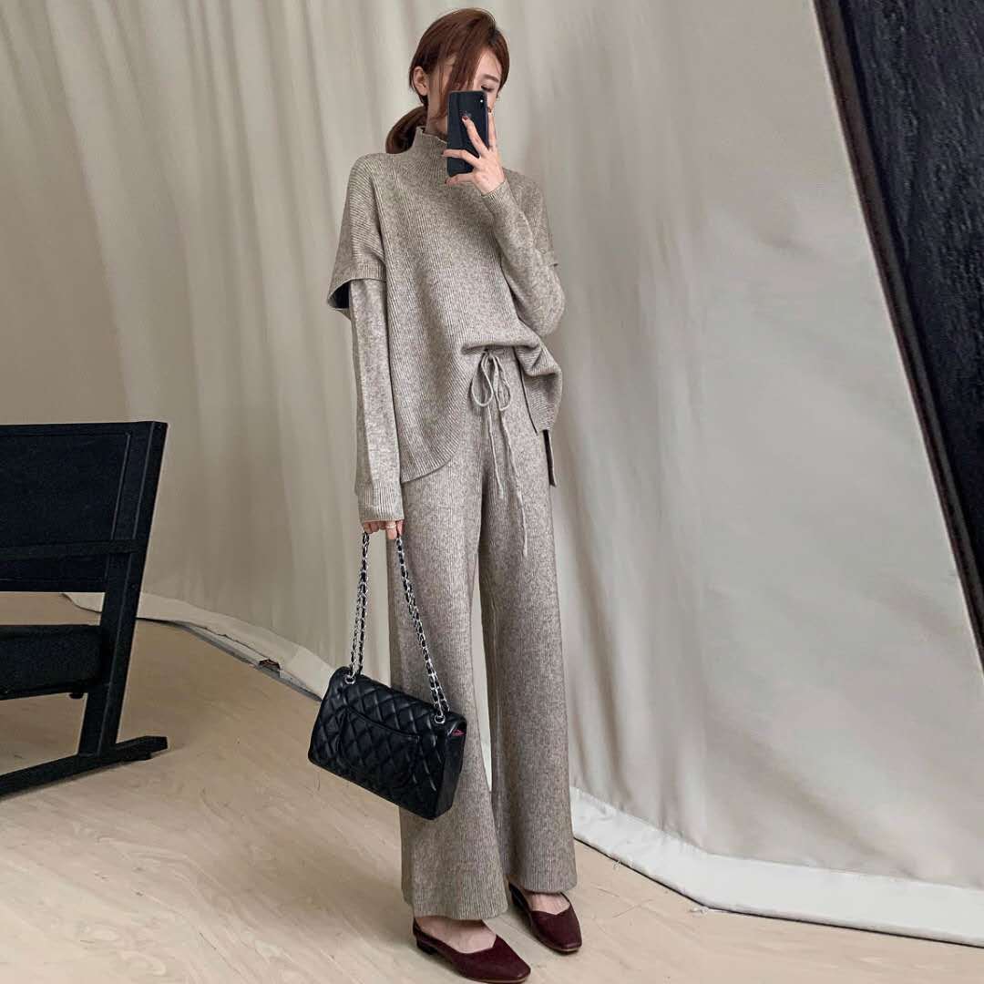 ニット3点セットベスト&カジュアルセーター&ガウチョパンツ着回し優雅セットアップ 【DL-1054】