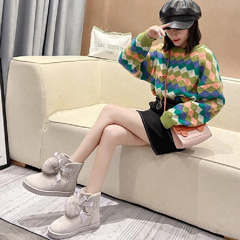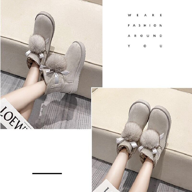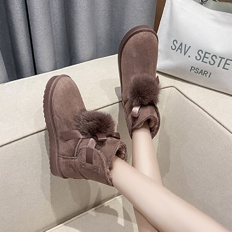 3カラー毛玉付きローヒールブーツ冬コーデ裏起毛温かい防寒シューズ 【DL-2051】