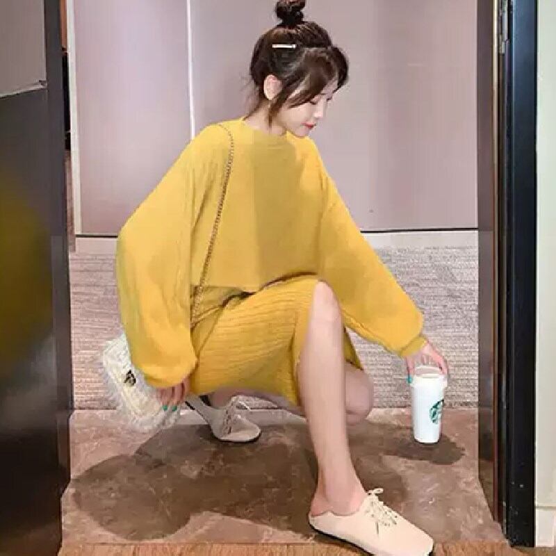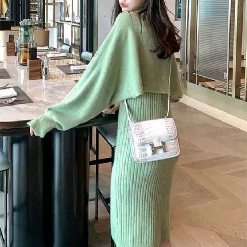 無地セーター&キャミソールワンピースストライプセットアップ大人可愛い 【DL-1074】