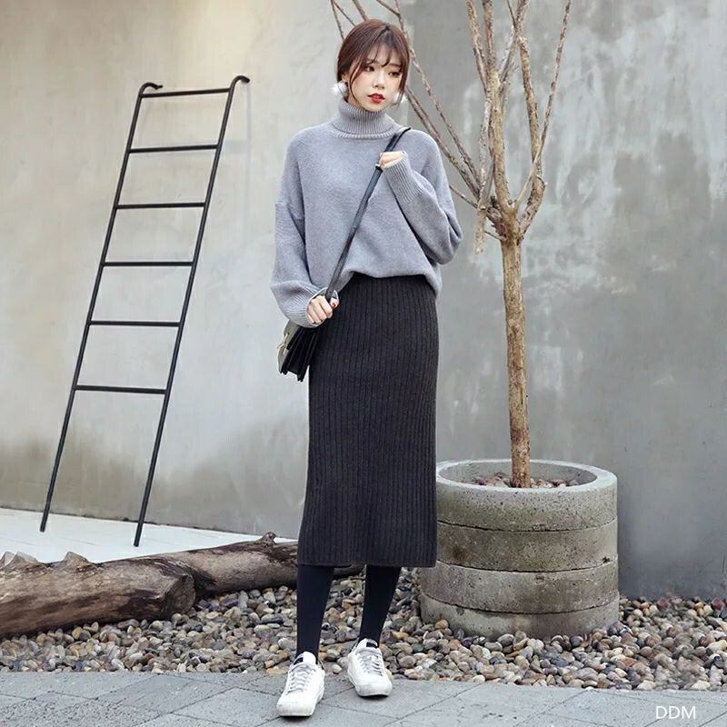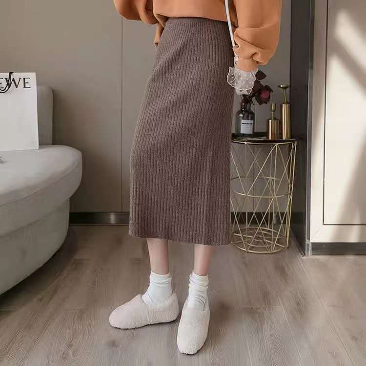 Hラインミモレスカートニットストレット冬コーデスカート 【DL-1868】