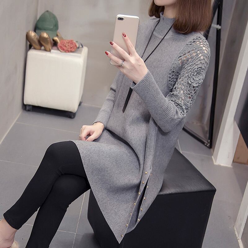 ニットケープ透かし彫り切り替え着痩せトップス 【DL-1450】