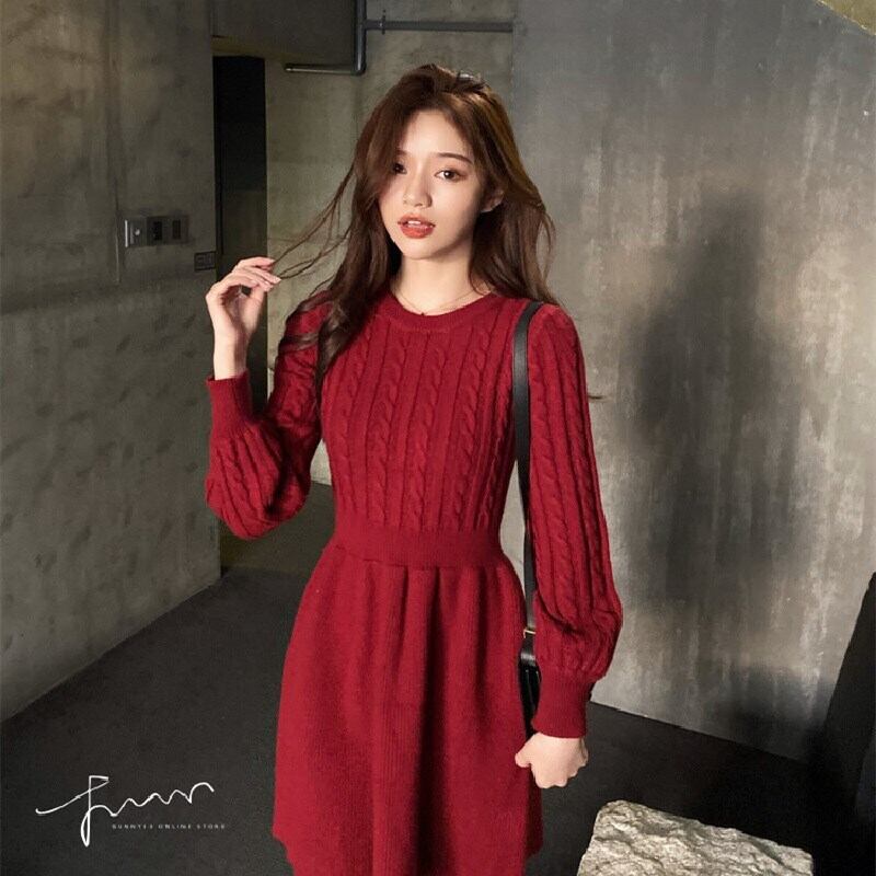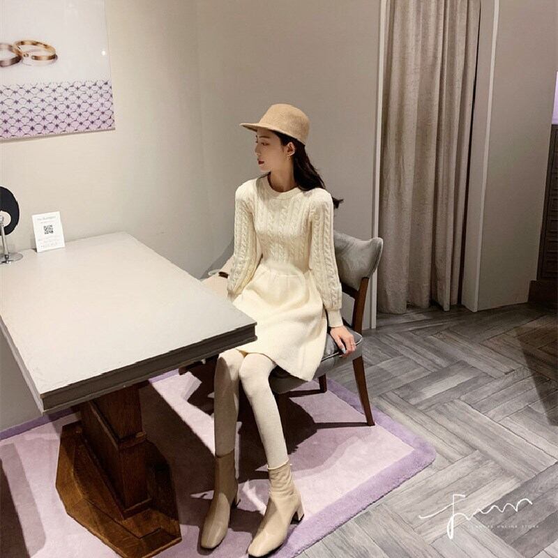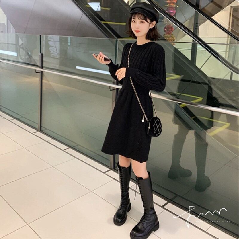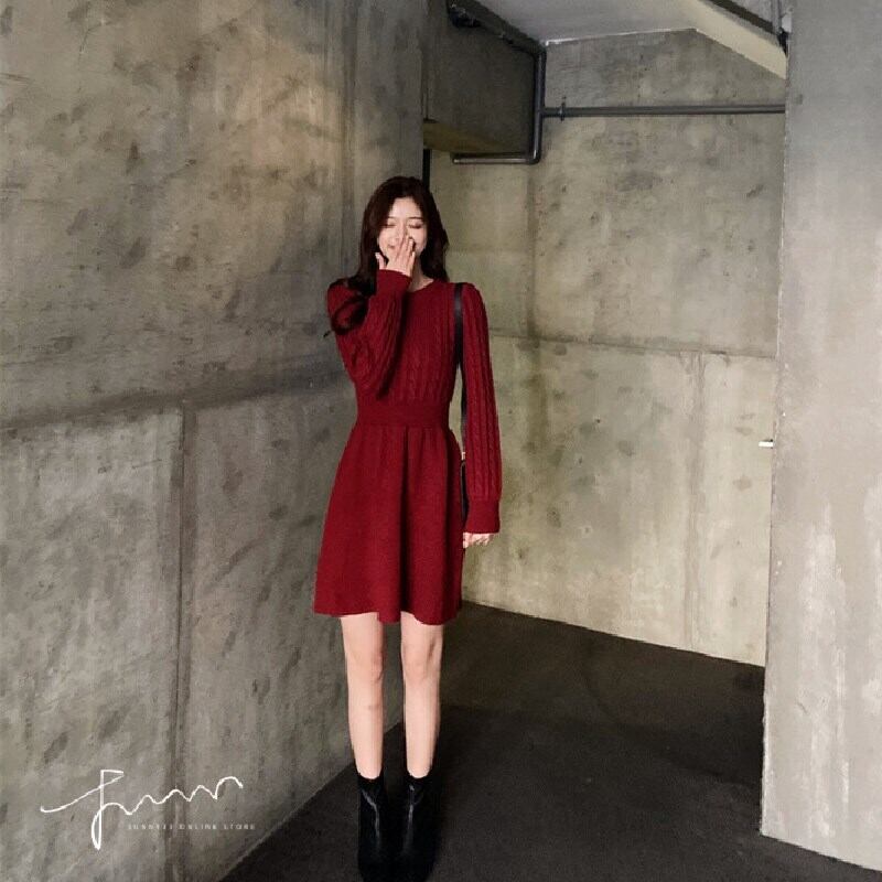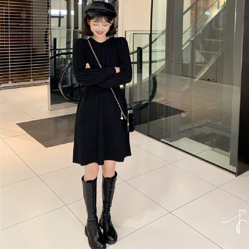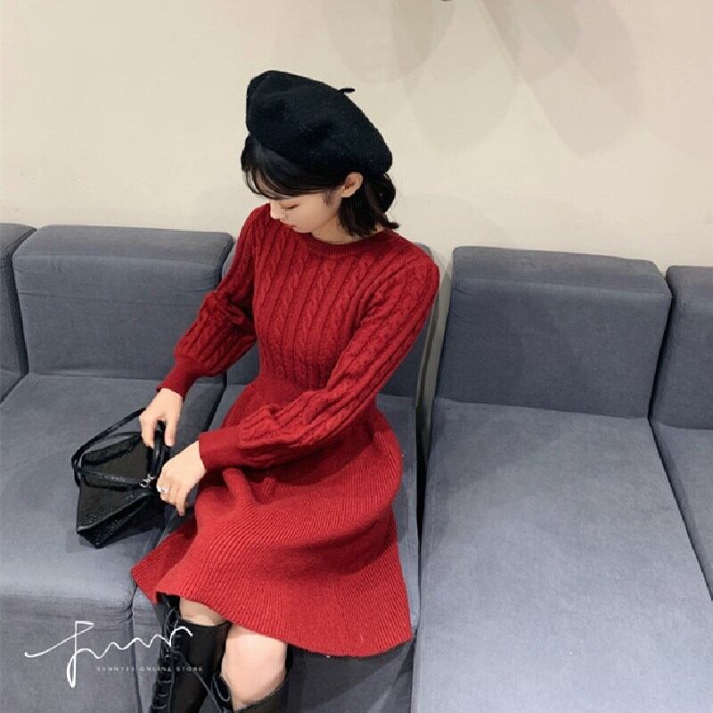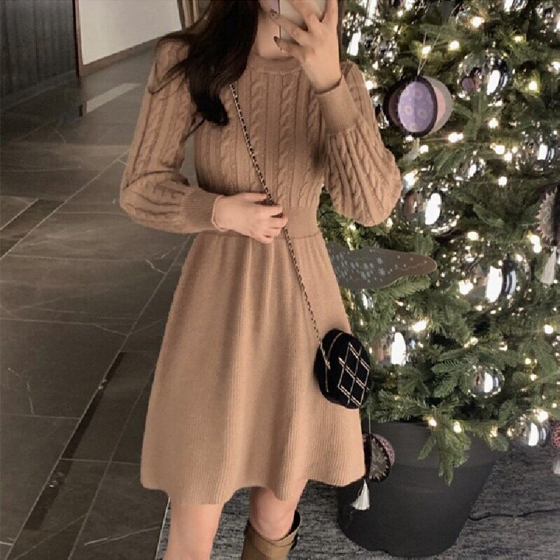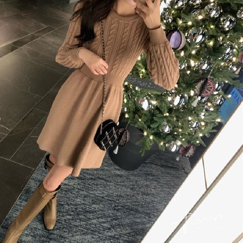 花柄ニットデートワンピース大人可愛い無地ワンピース 【DL-1244】