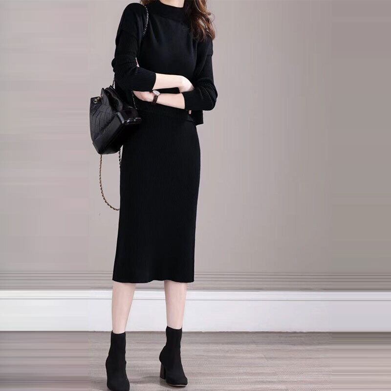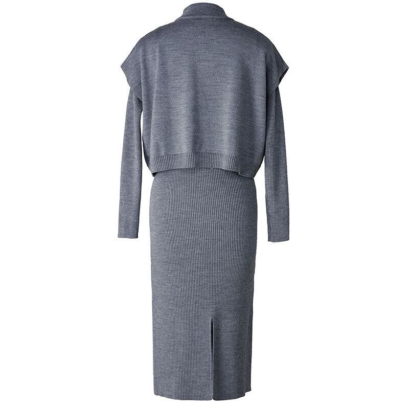 ニットベスト&ストライプ長袖ワンピースエレガント通勤デートセットアップ 【DL-1082】