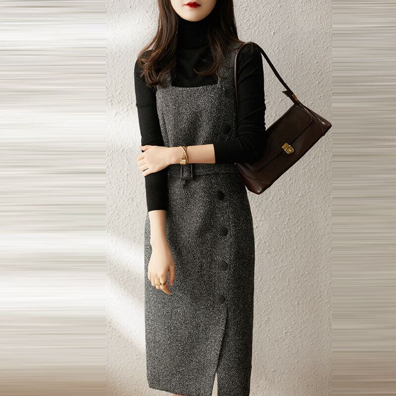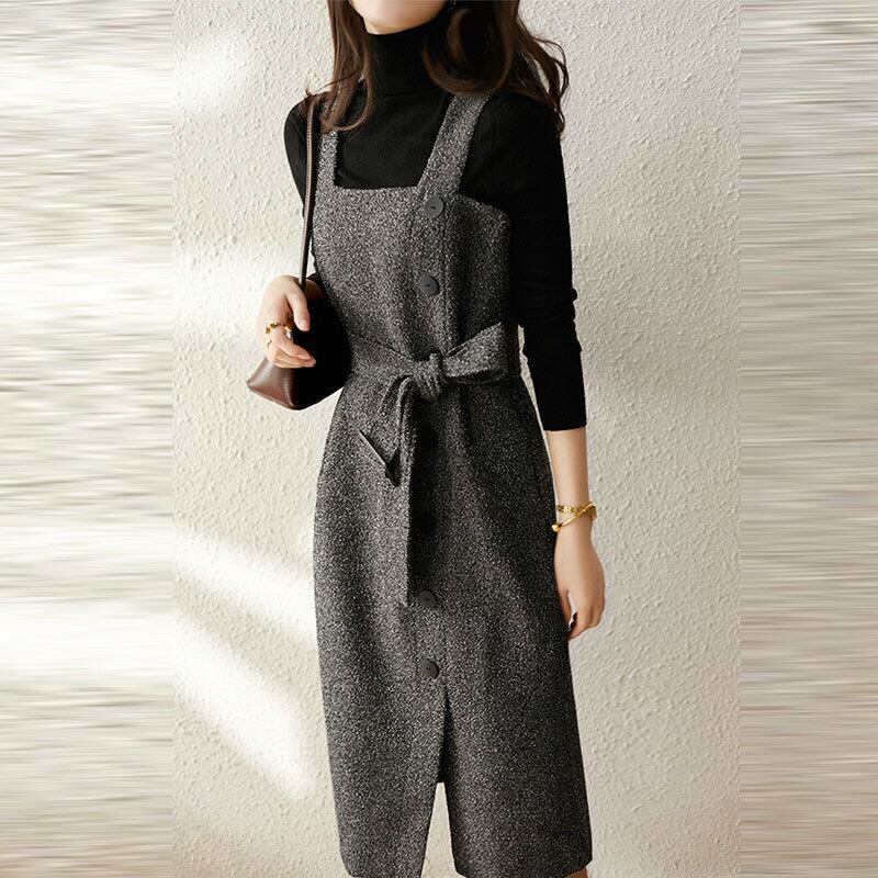 サスペンダーワンピース無地着回し冬コーデワンピース 【DL-1252】