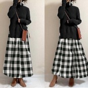 重ね風チェック柄切り替えワンピースマキシワンピース体型カバー 【DL-1253】