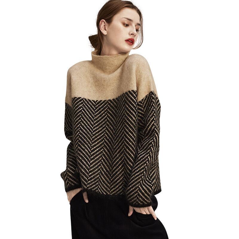 配色切り替えハイネックニット・セータートップス 【DL-1473】