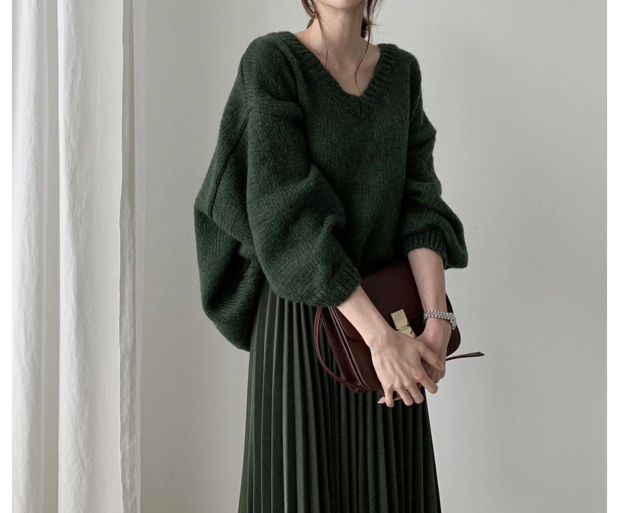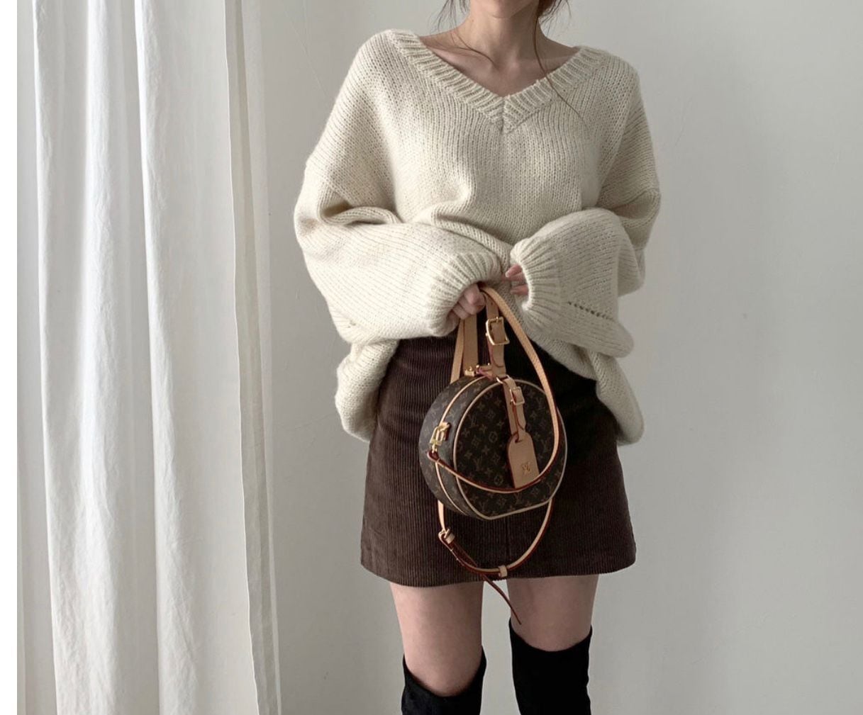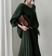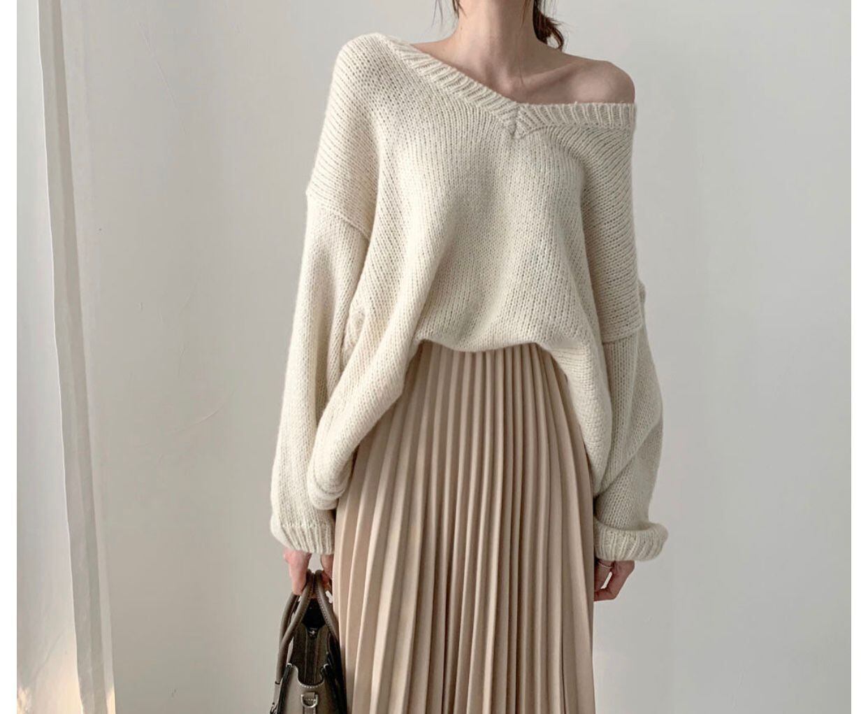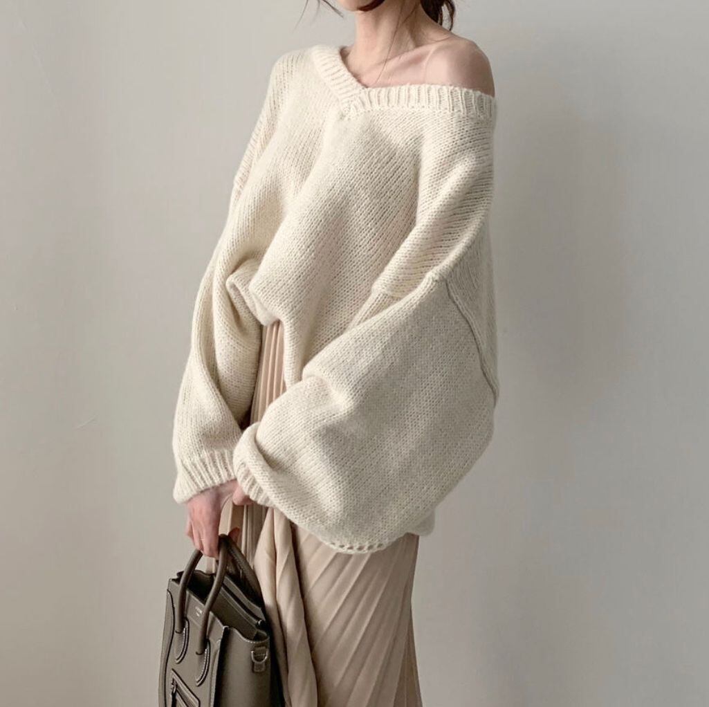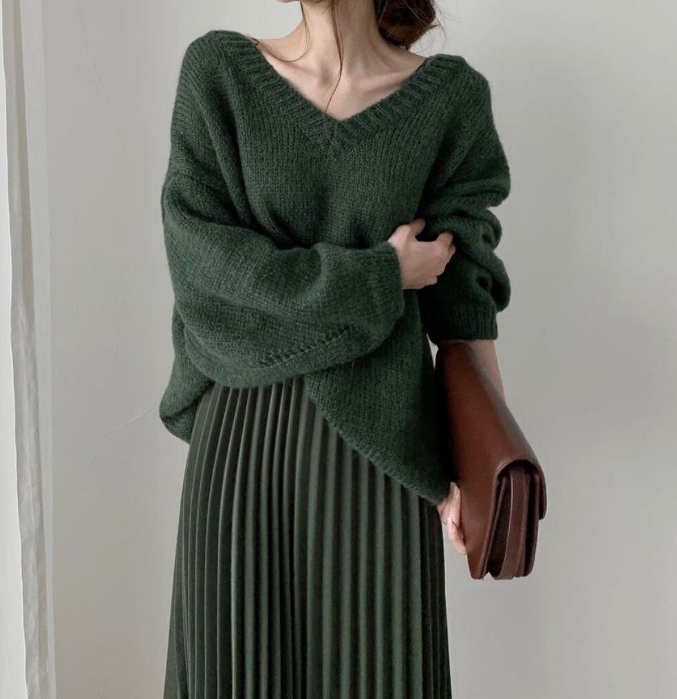 エレガントVネック無地セーター柔らかカジュアルニット・セータートップス【DL-1483】