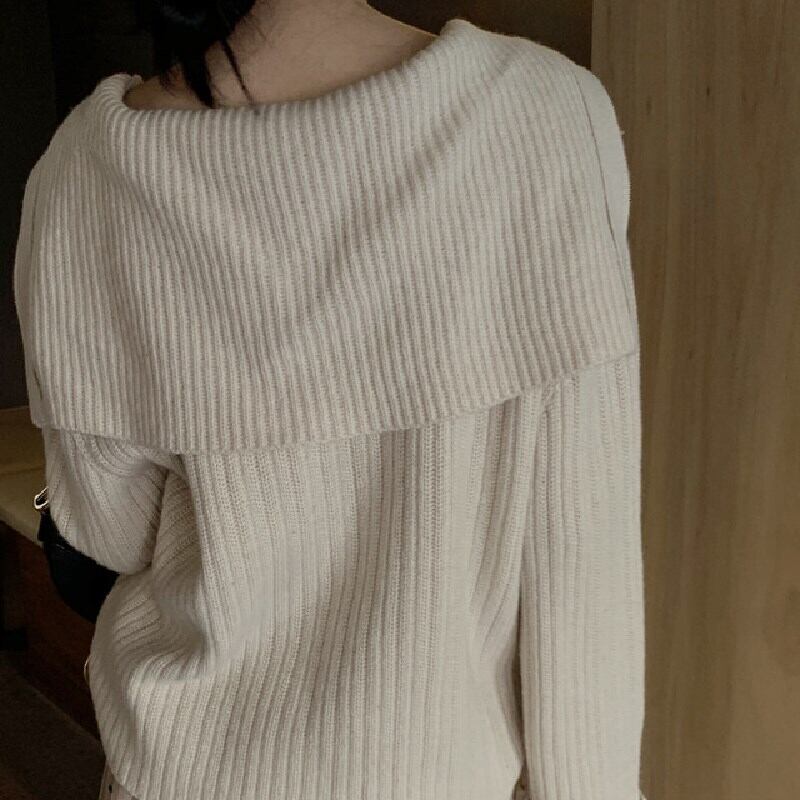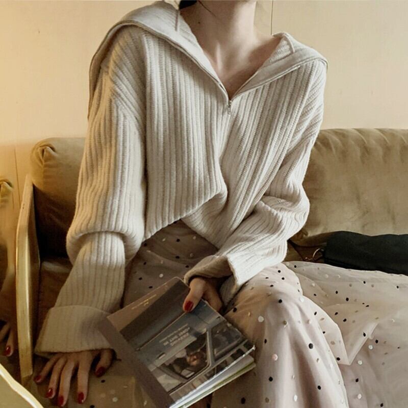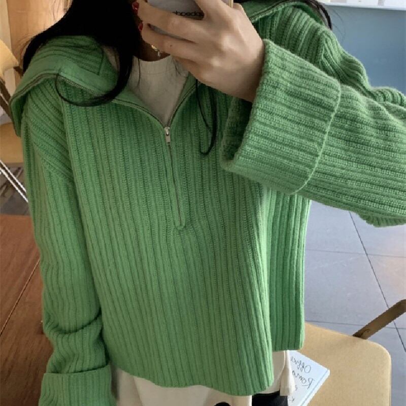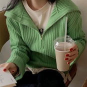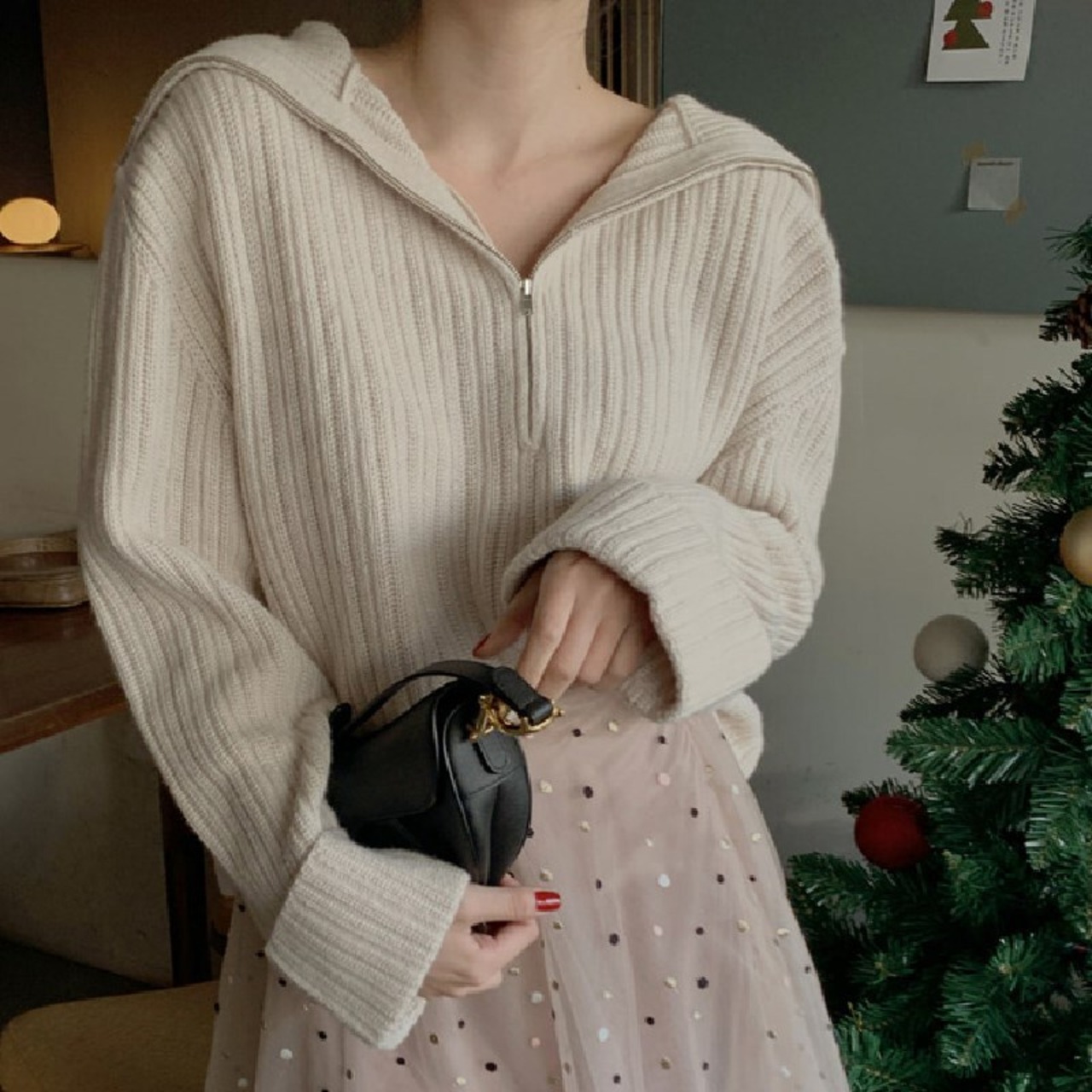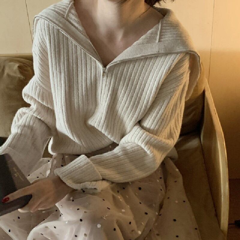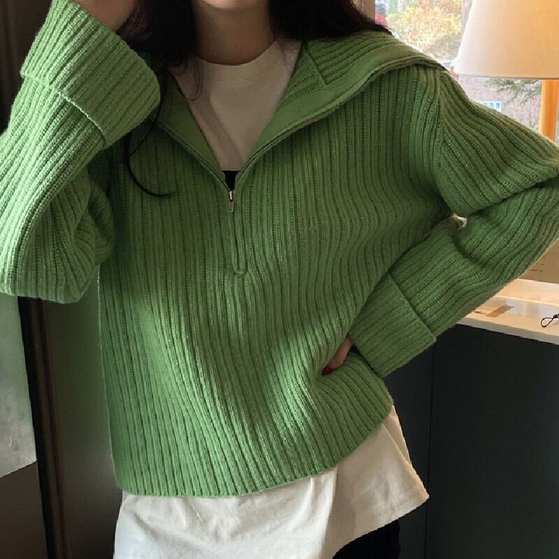 ニットジッパー付きストライプカジュアルトップスセーター 【DL-1487】