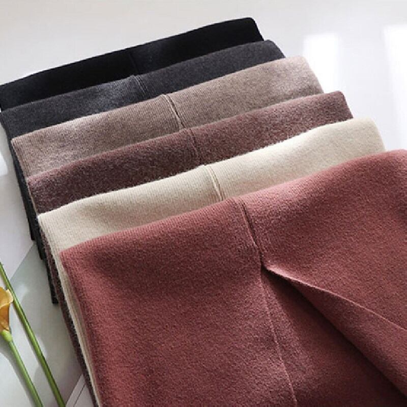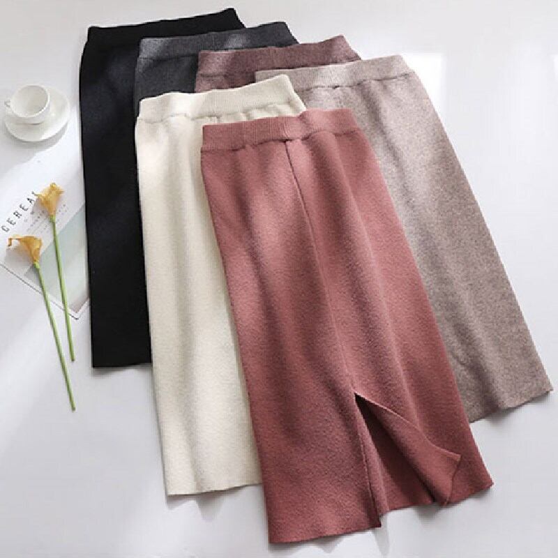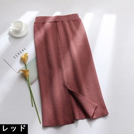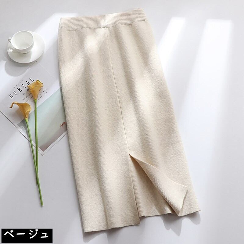 ニットゴムスリットミモレ丈ニットスカート無地シンプルカジュアル 【DL-1887】