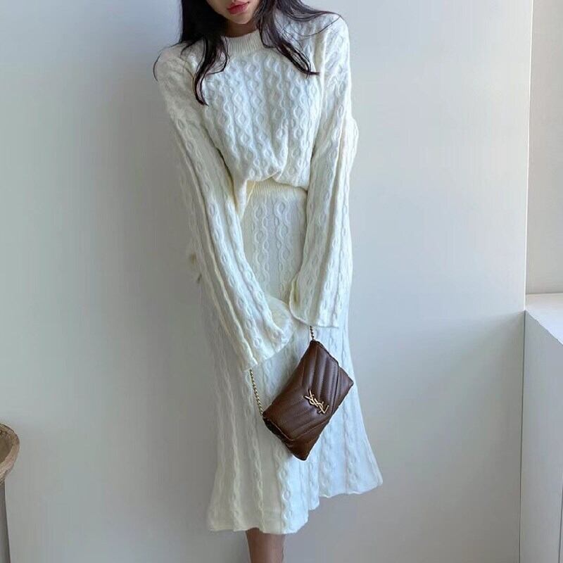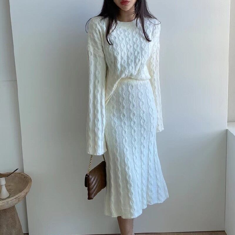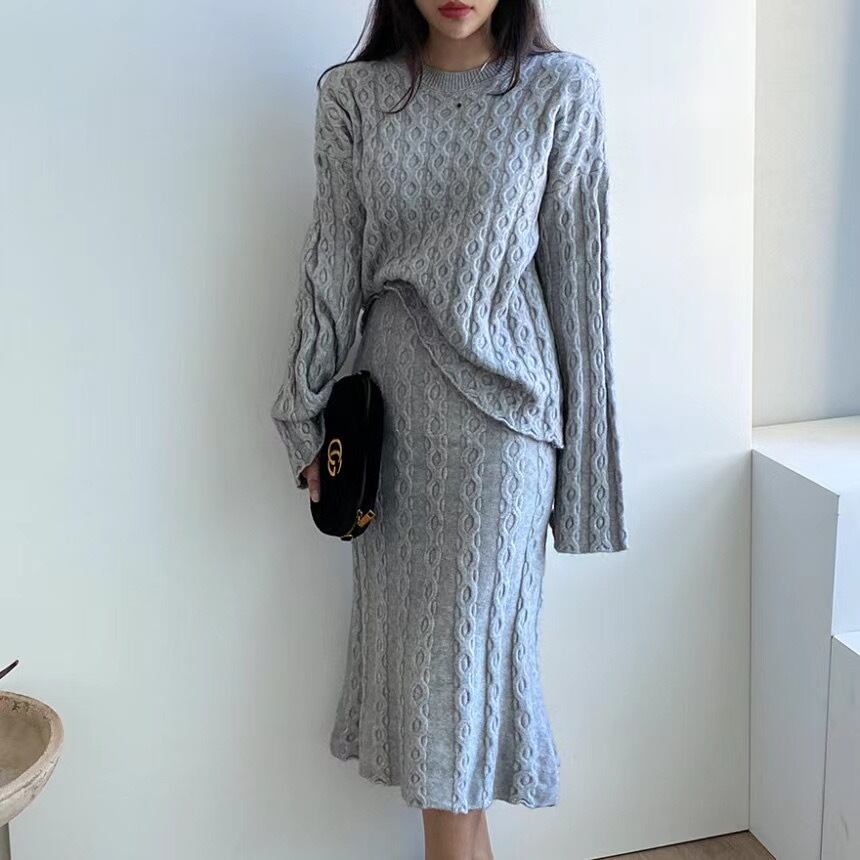 ニット柔らかセーター&フレア裾ロングスカートセットアップ着回し 【DL-1105】
