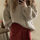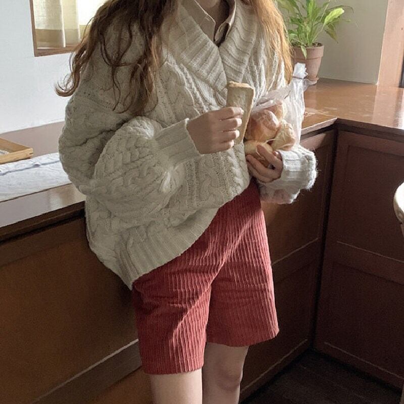 カジュアルケーブル編みニットセーターVネックリゾート無地トップス 【DL-1499】