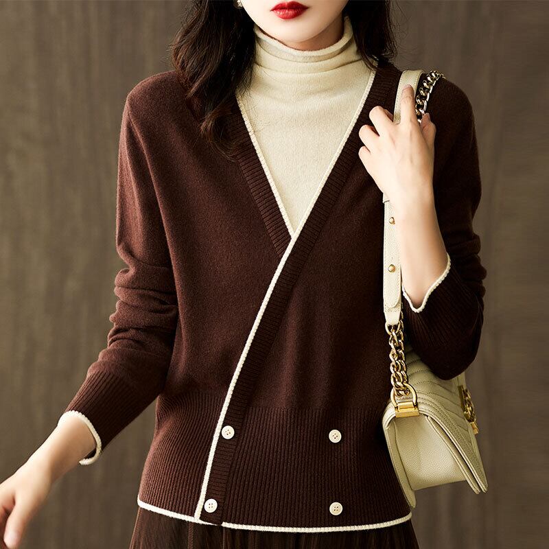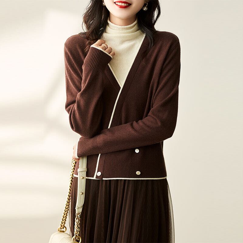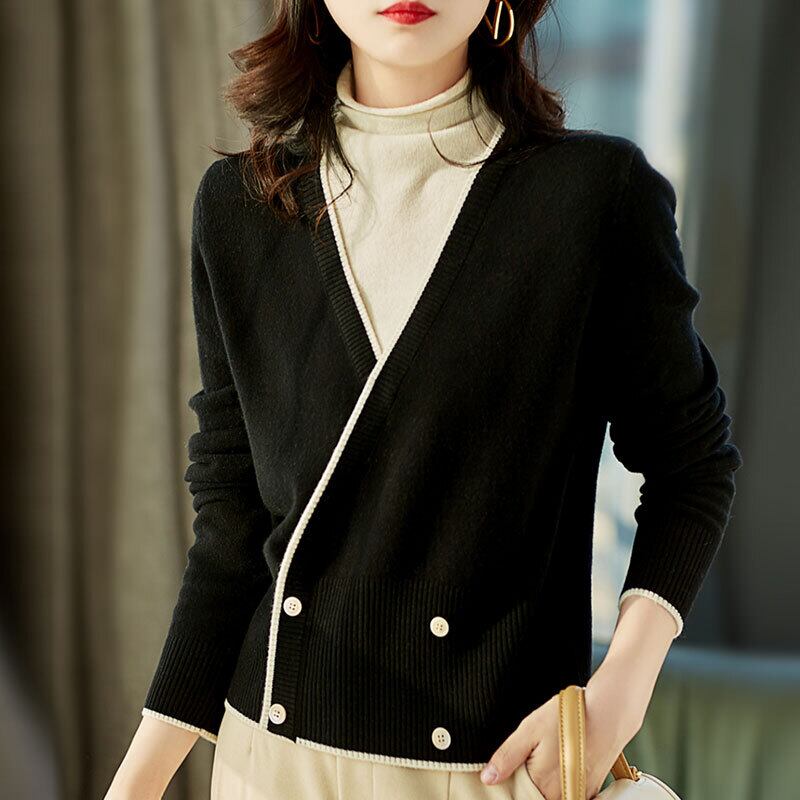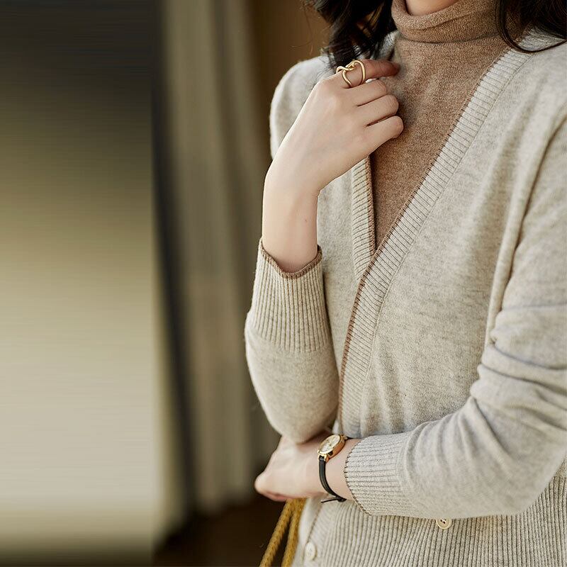 重ね風ハイネックニットセーターエレガントデートコーデトップス 【DL-1504】
