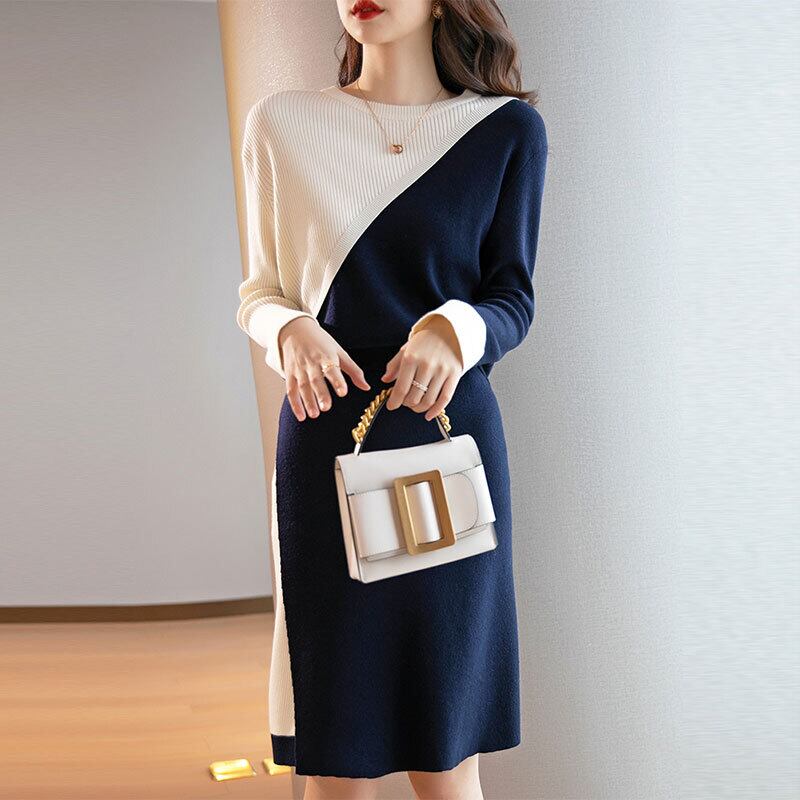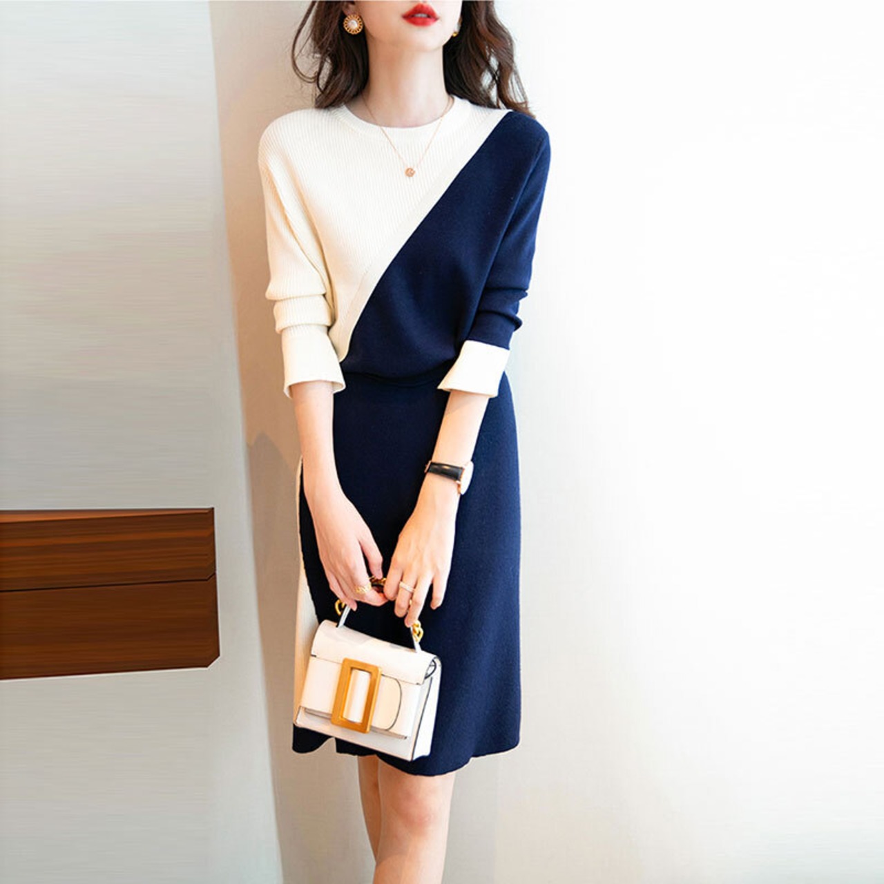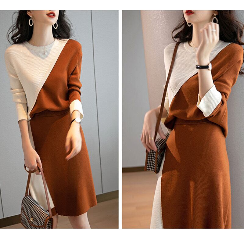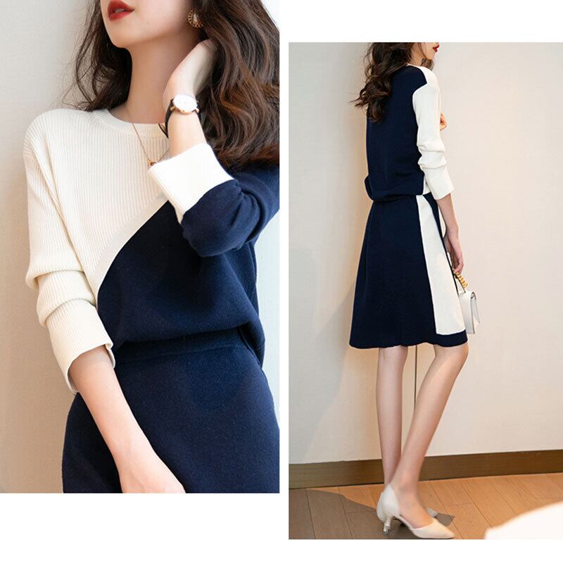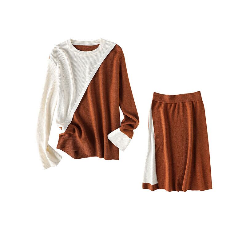 配色切り替えニットセーター&ニットスカート着回しセットアップ 【DL-1114】