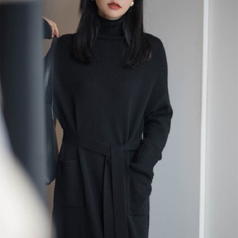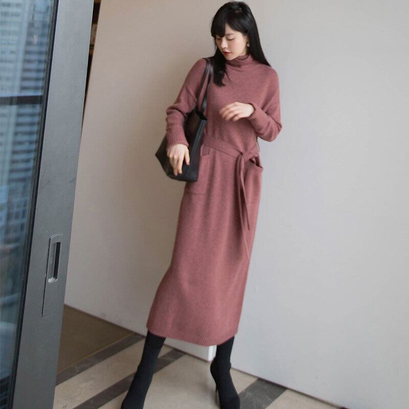 3カラー選択ニットハイネックワンピースポケット付きデートワンピース優雅ワンピース 【DL-1281】