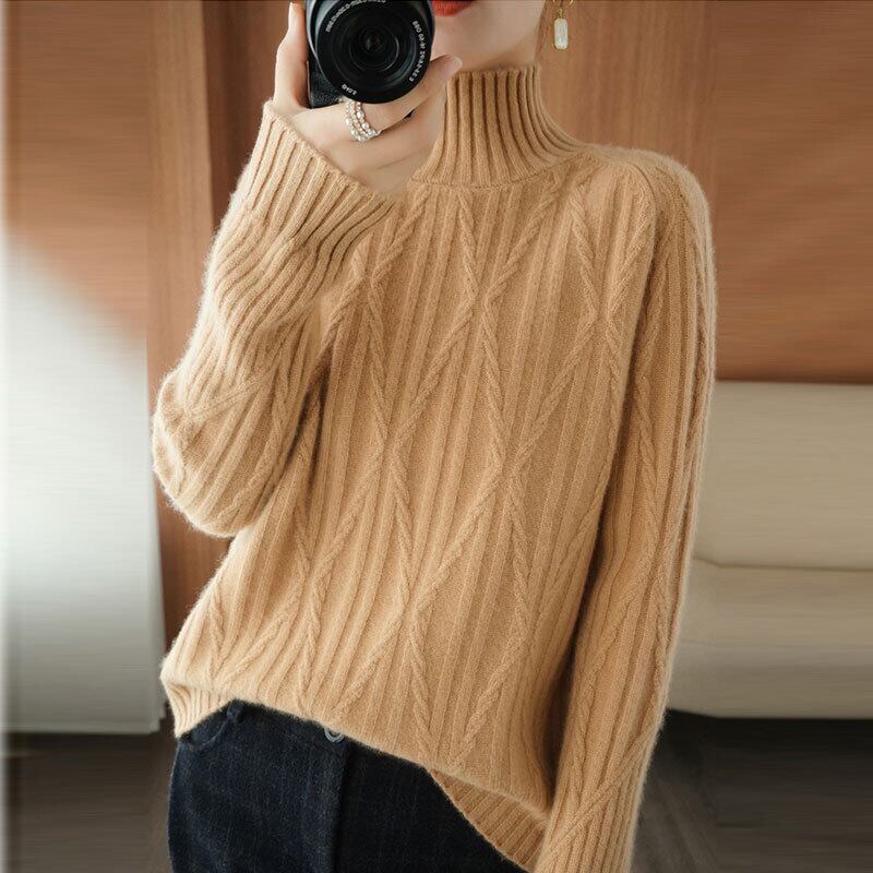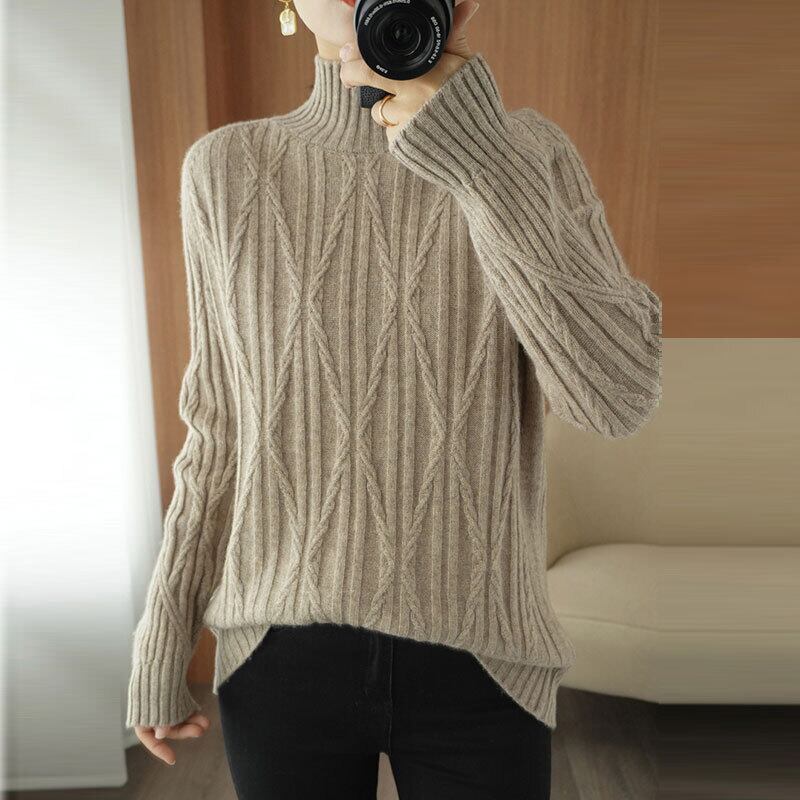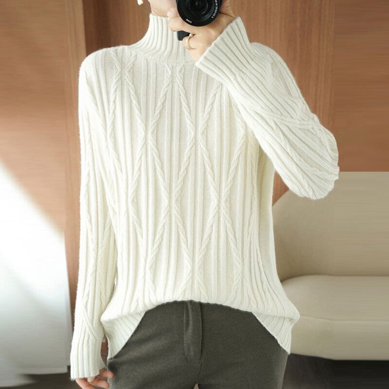 ケーブル編みニットセーターハイネックシンプルトップス 【DL-1508】