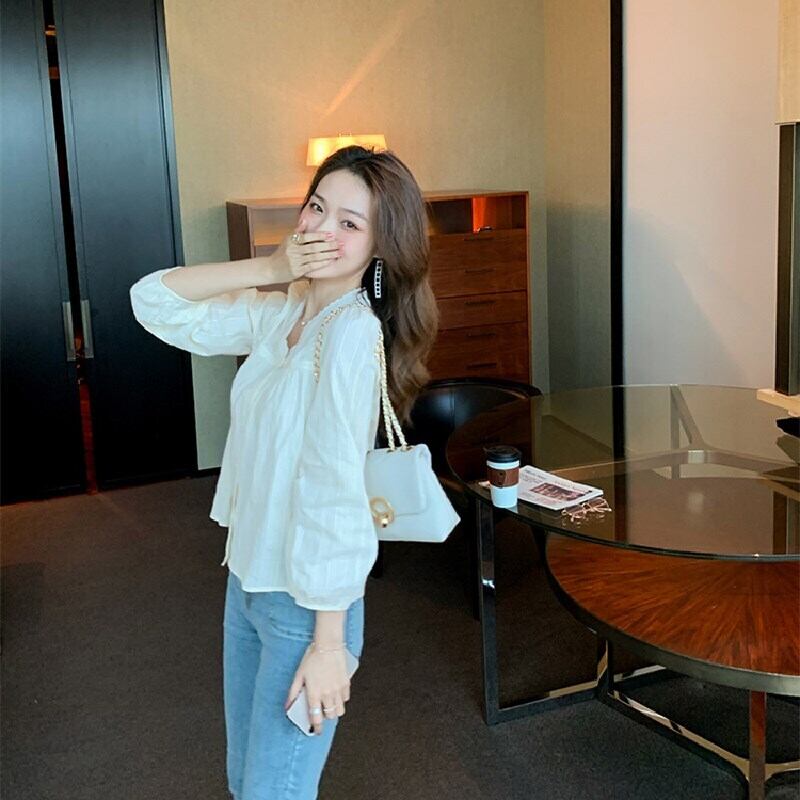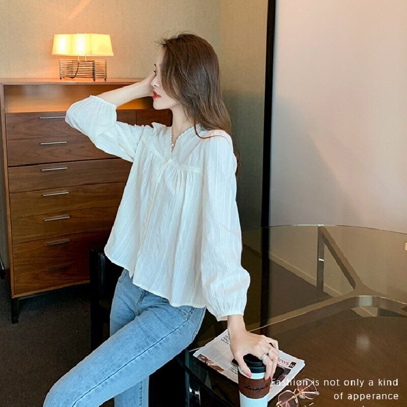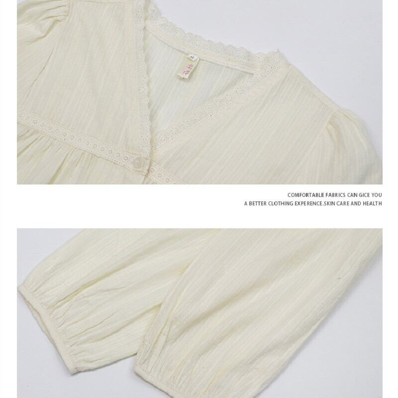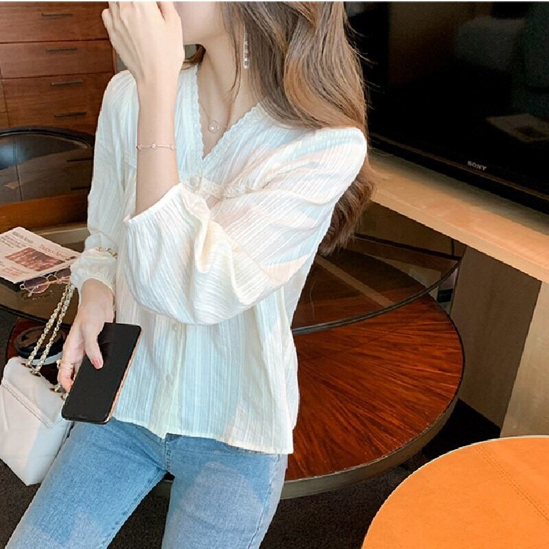 柔らかレース切り替えシャツ・ブラウストップス 【DL-1511】