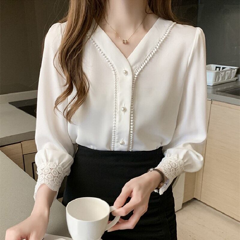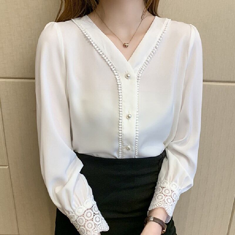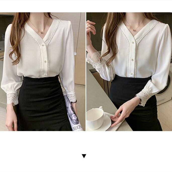 レース切り替えホワイトシャツ・ブラウストップス 【DL-1513】