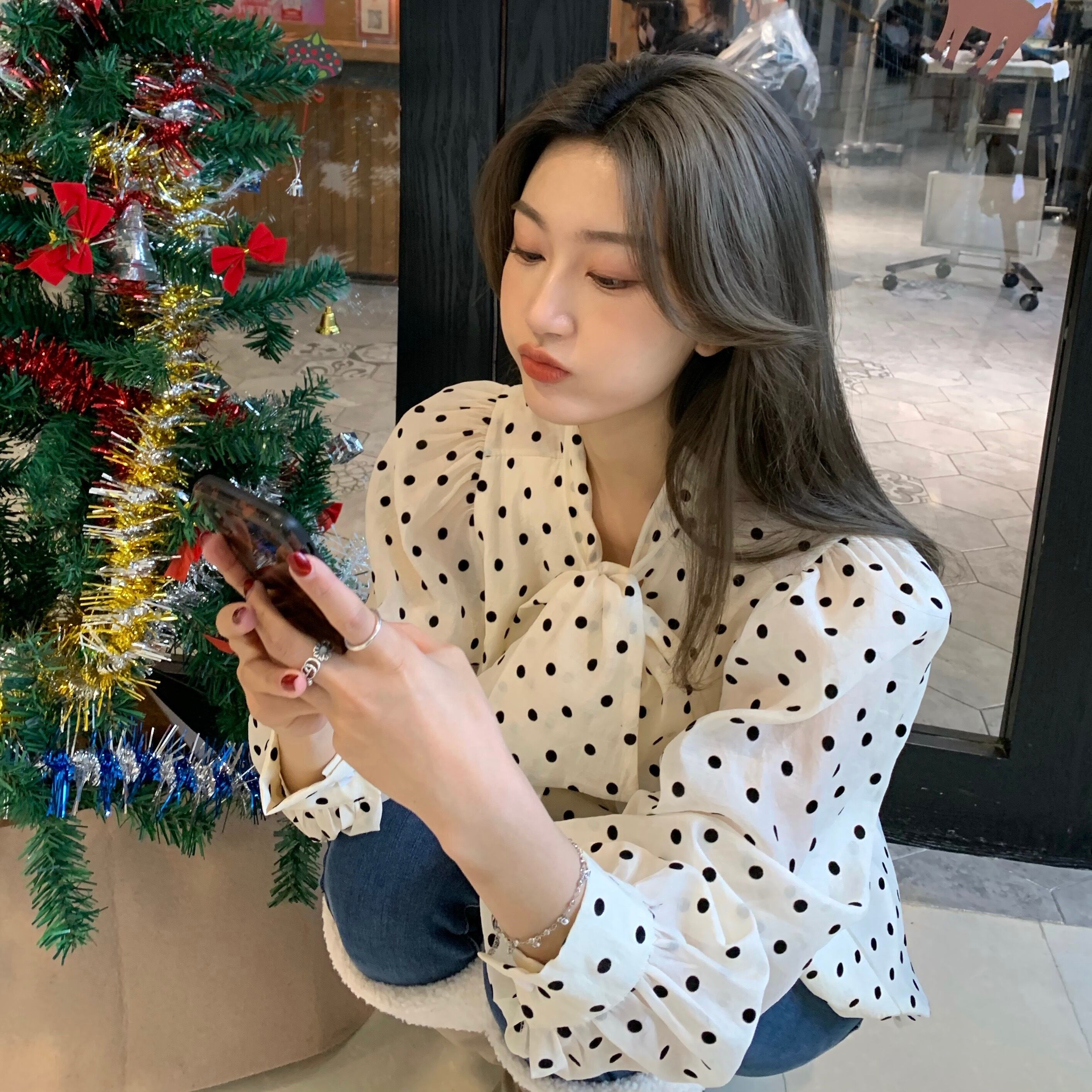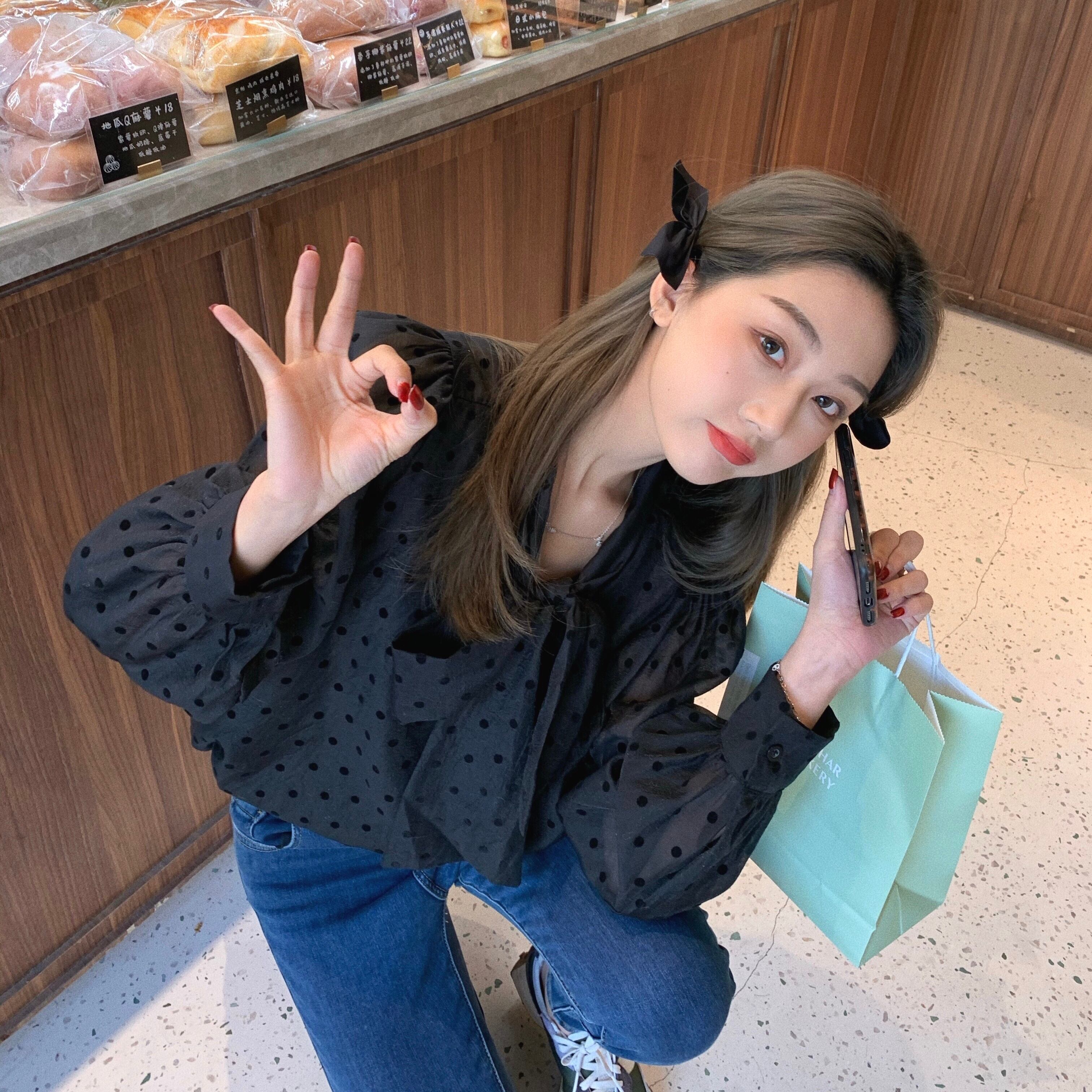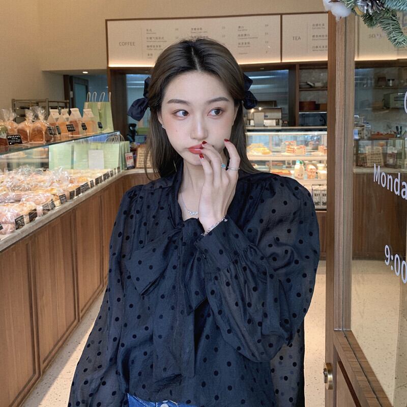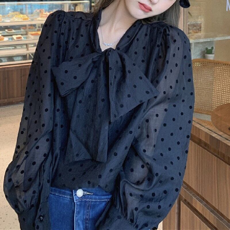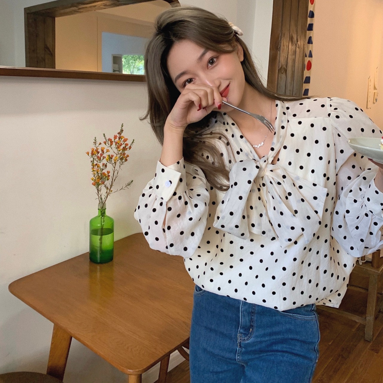 トッド柄ボウタイブラウス・シャツトップスデートコーデ 【DL-1517】