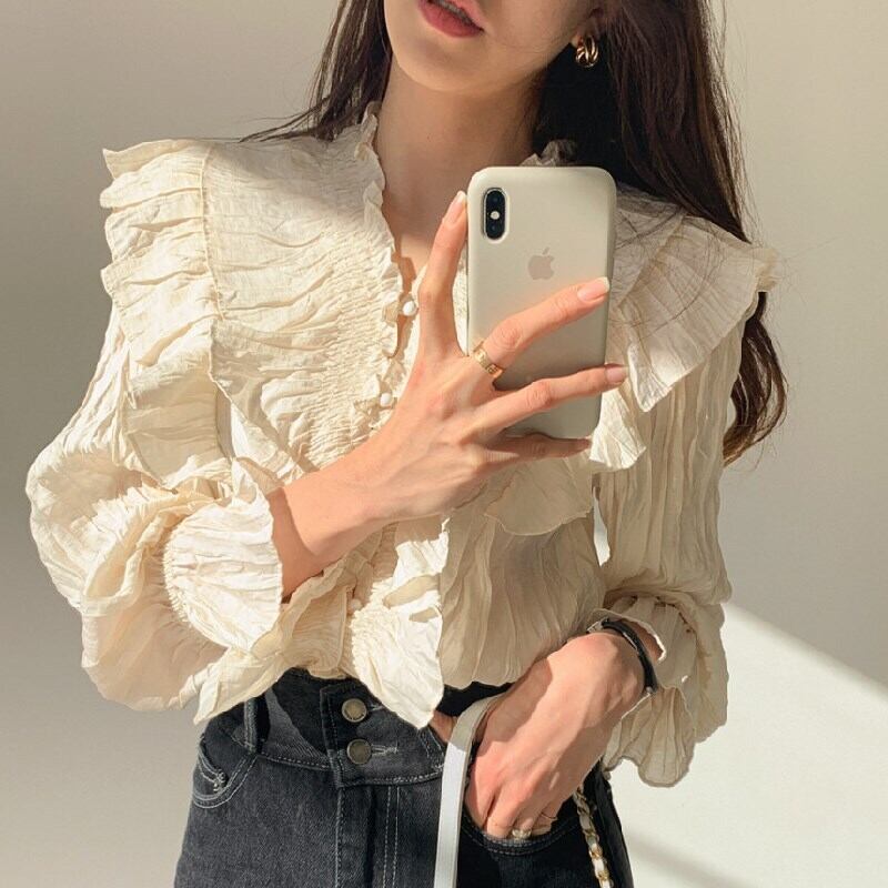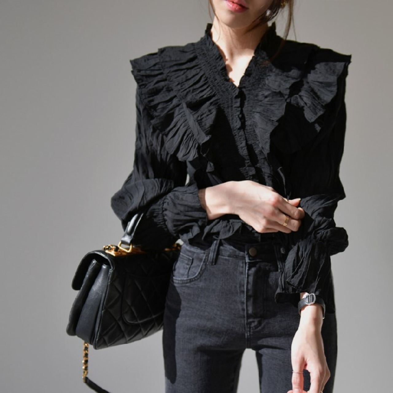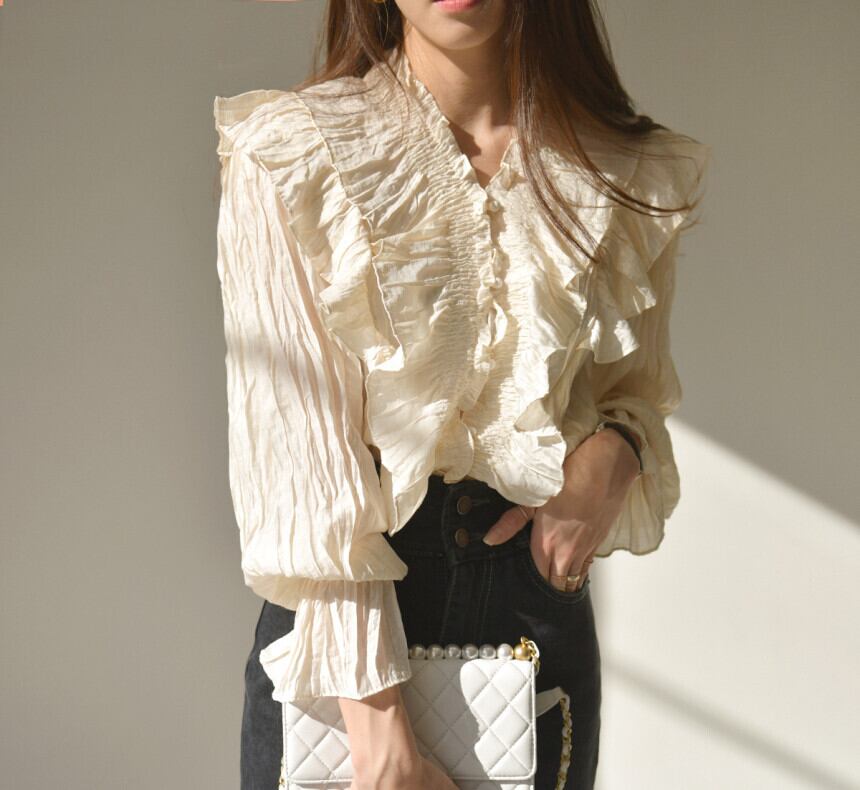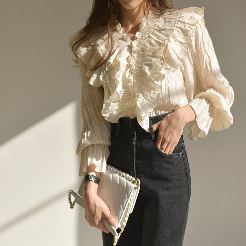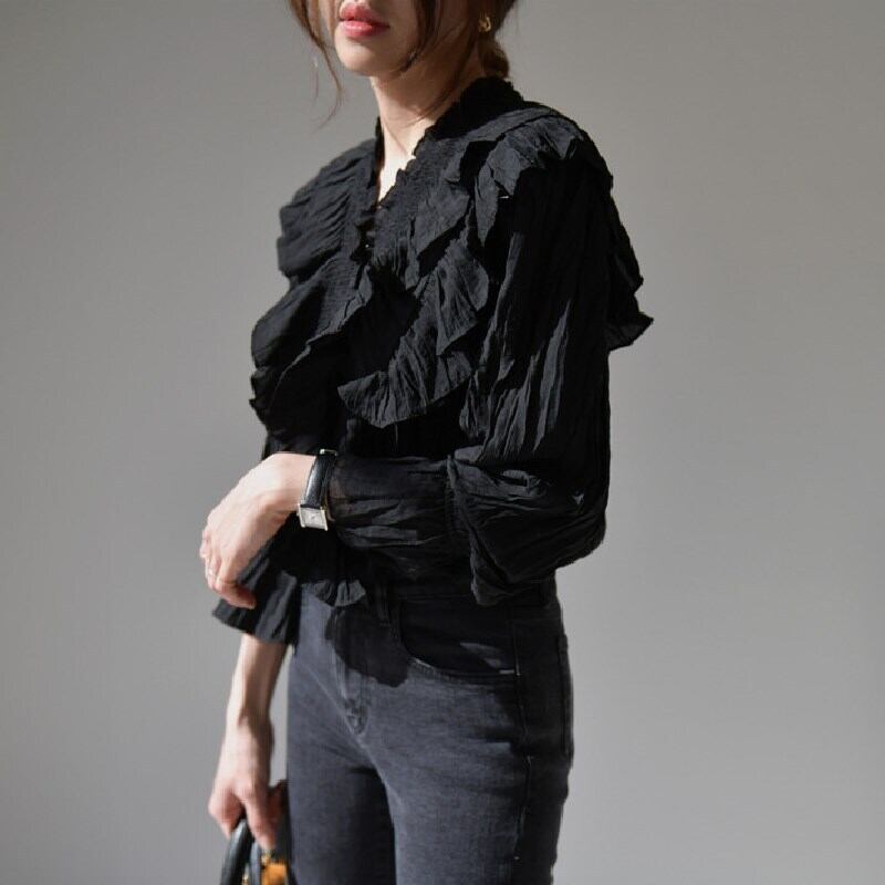 フリル裾トラペットブラウス・シャツトップスデート 【DL-1518】