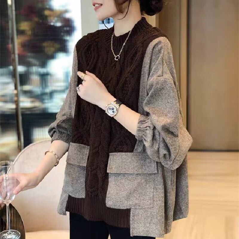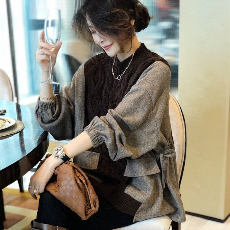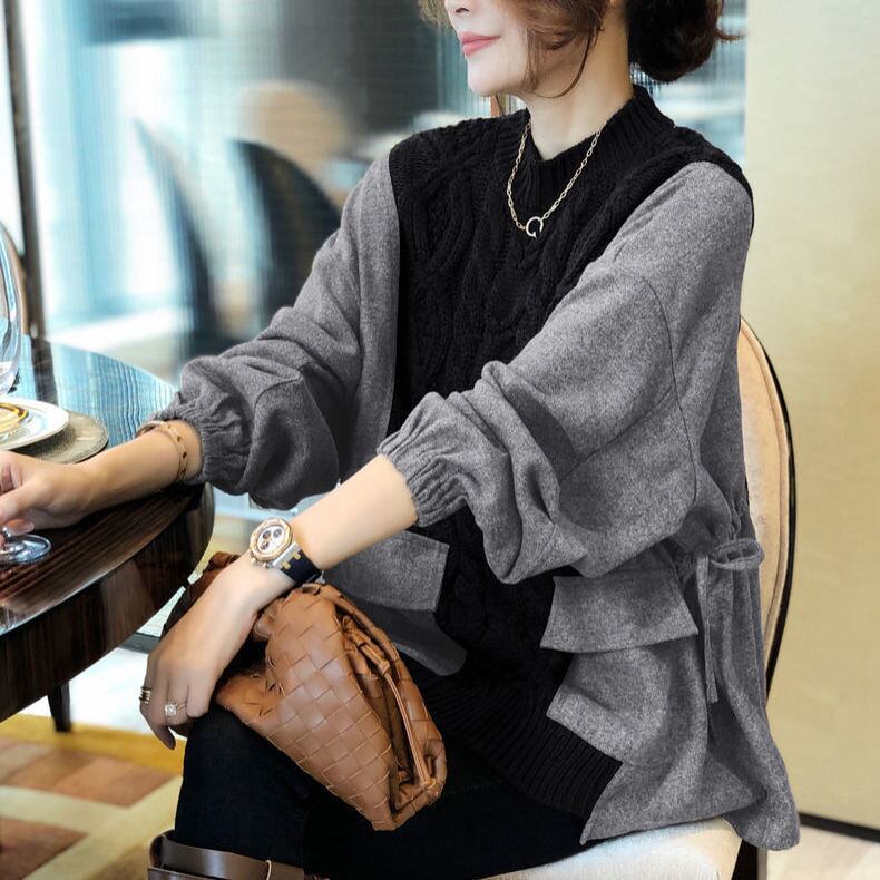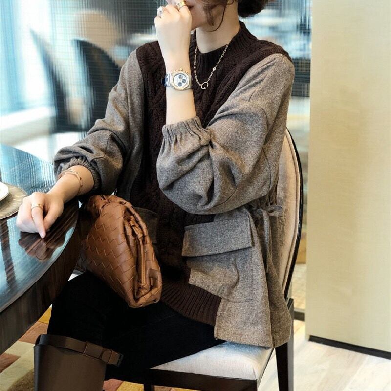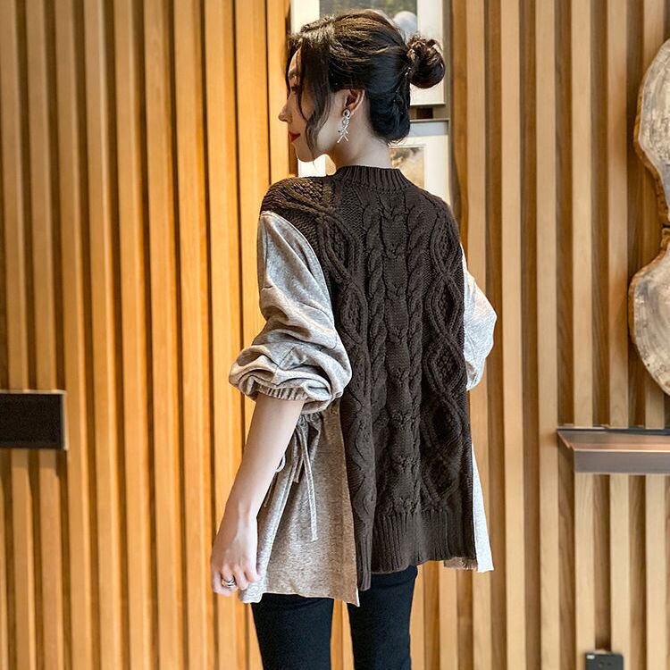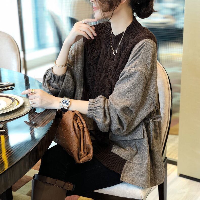 トラペット袖ニット切り替えカジュアルセータートップス 【DL-1520】