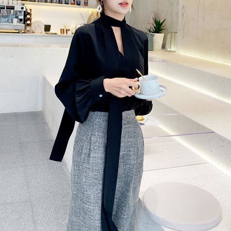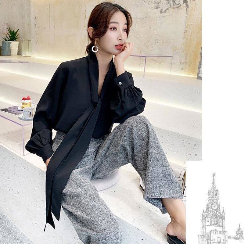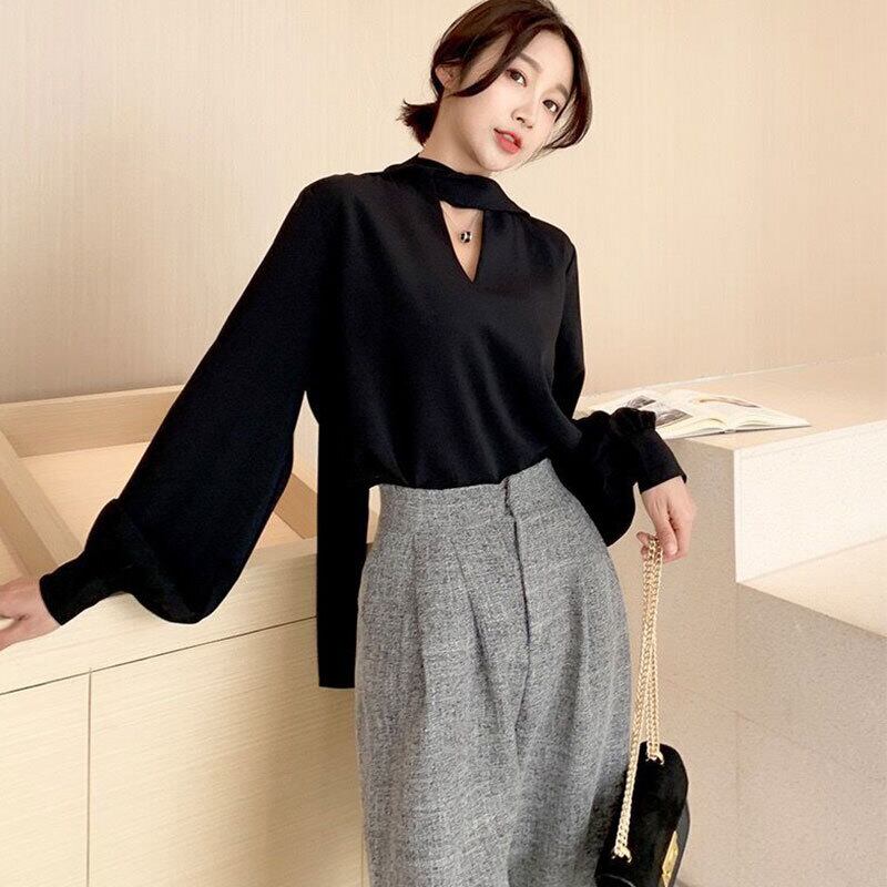 黒トップス&ハイウエストガウチョセットアップ通勤OLコーデ 【DL-1131】