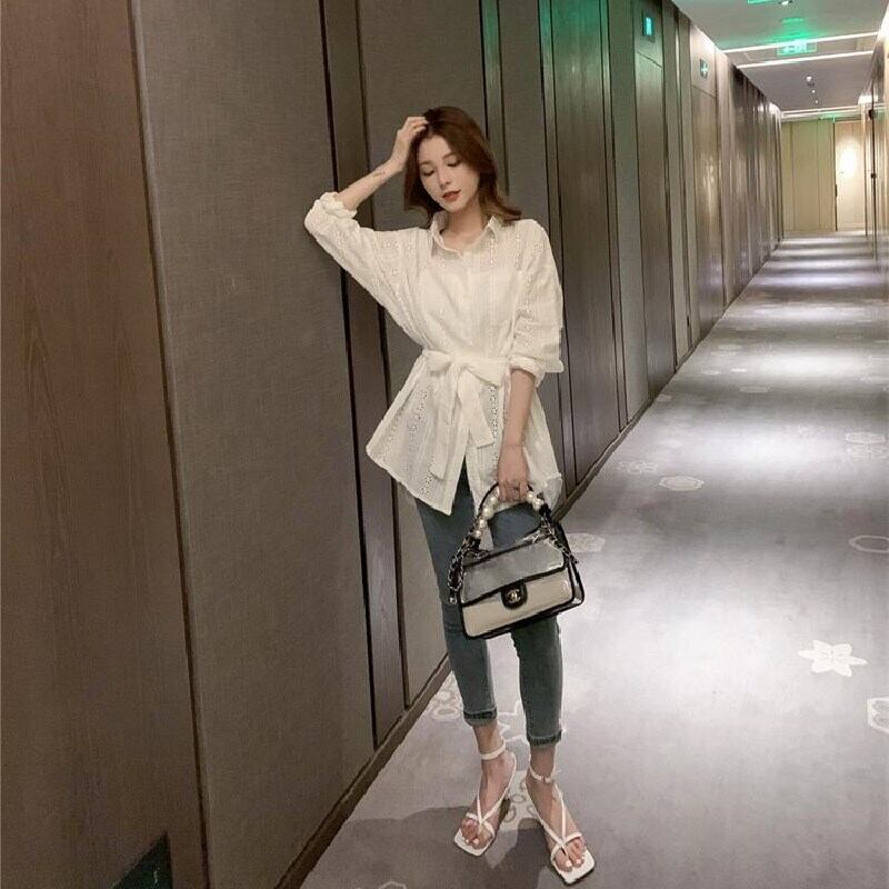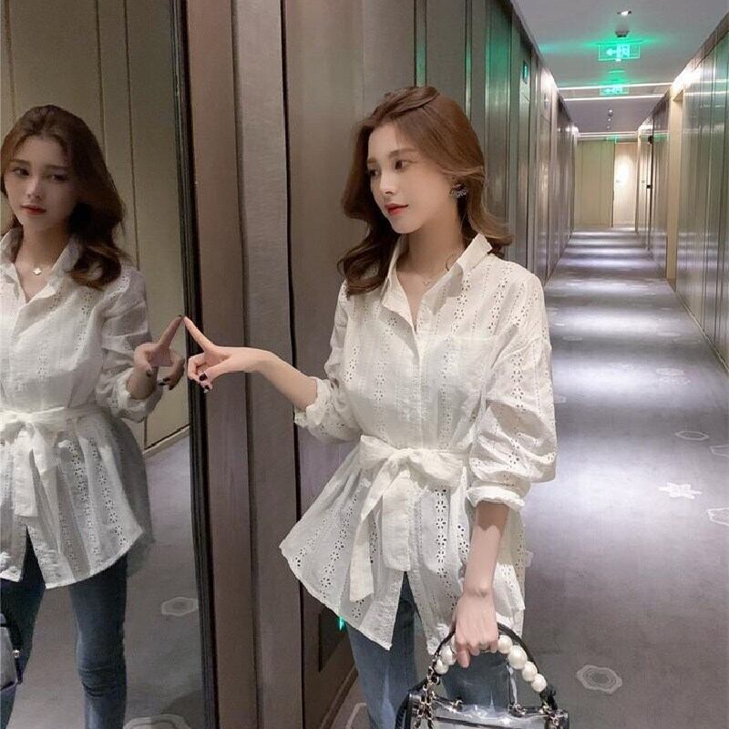 透かし彫りホワイトボウタイブラウストップス 【DL-1548】