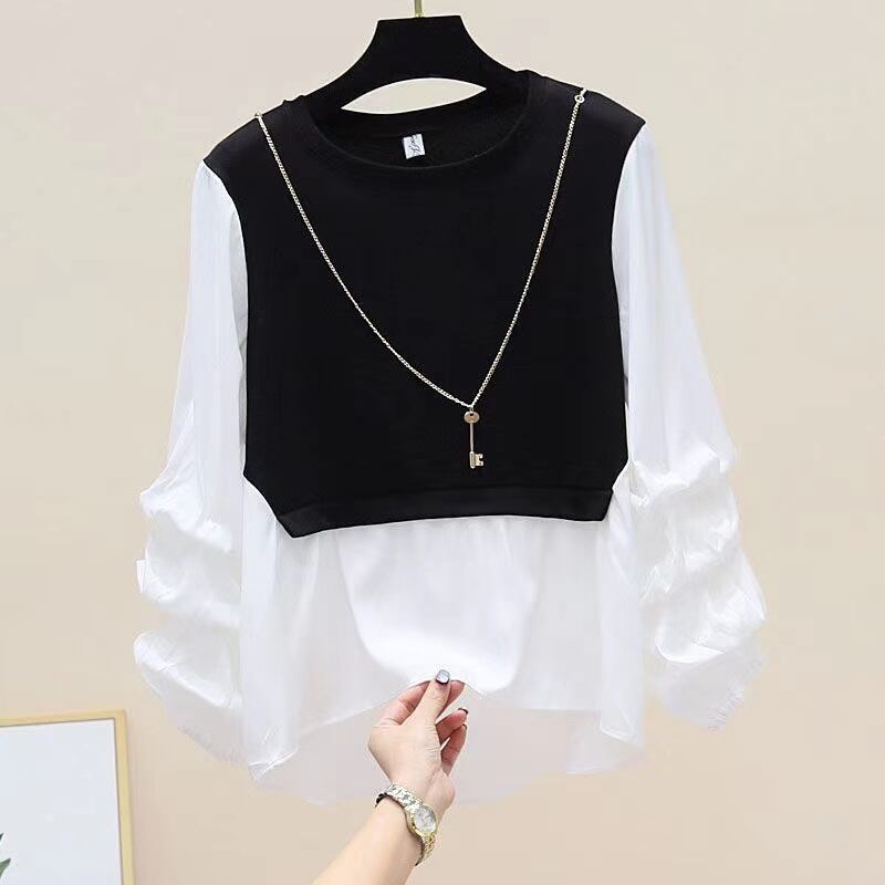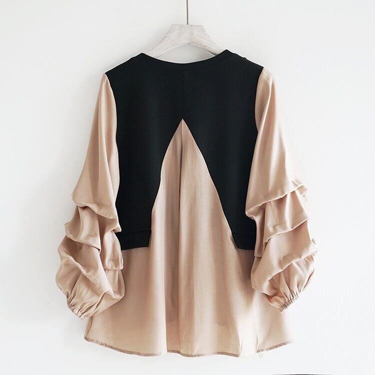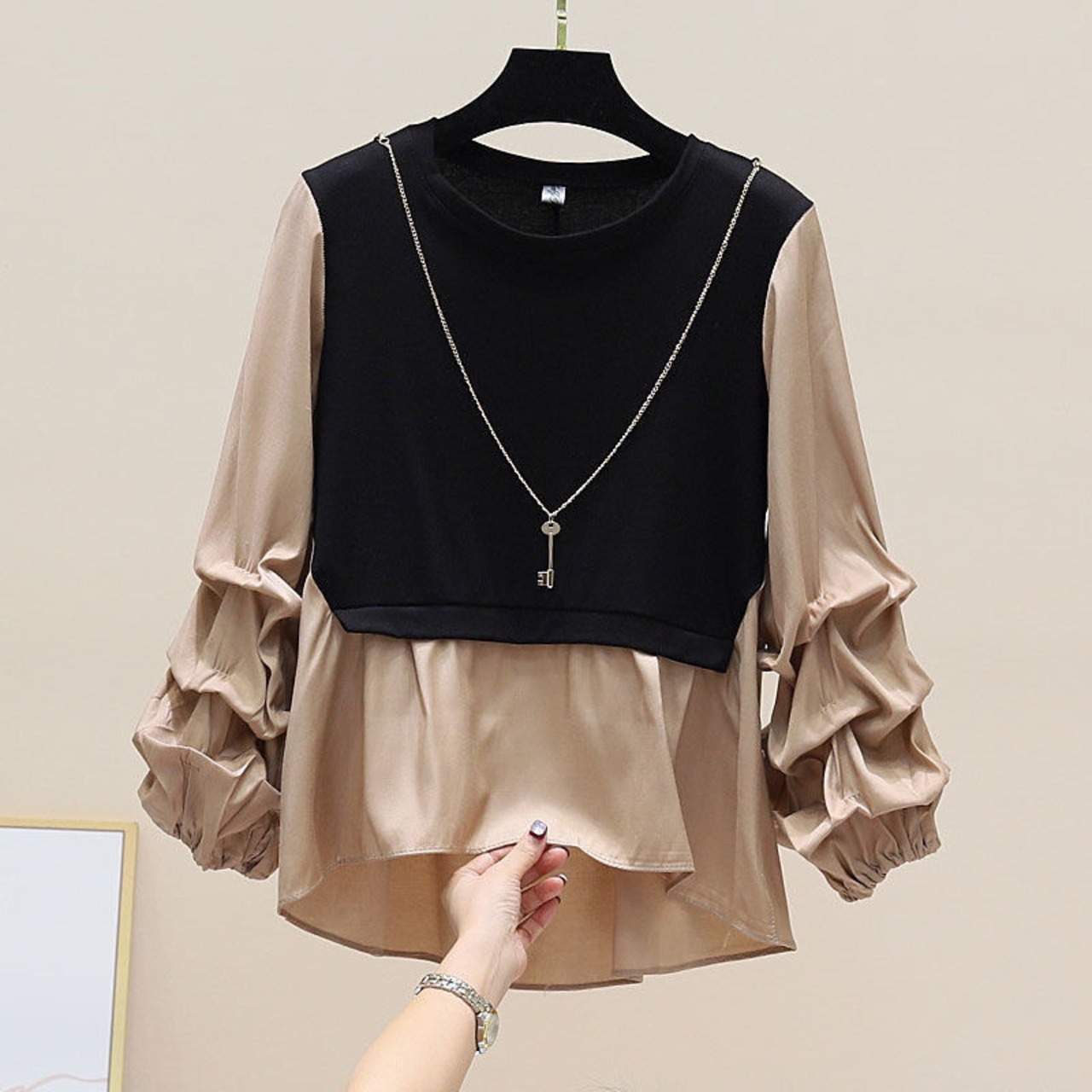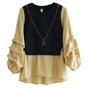 4カラー選択デザインスタイル長袖ファッション切り替えゆったり着痩せ効果シャツ・ブラウス(飾り付き)【DL-2504】