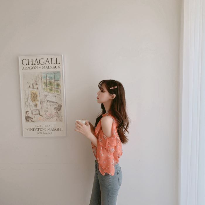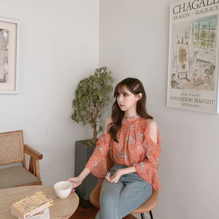 シフォン花柄フリル裾ブラウス・シャツトップス【DL-2509】