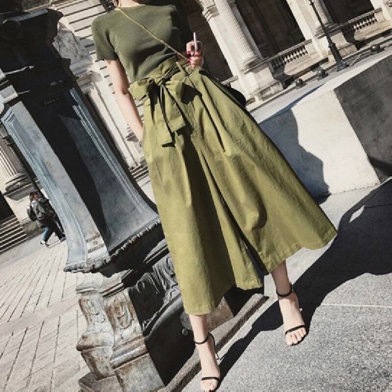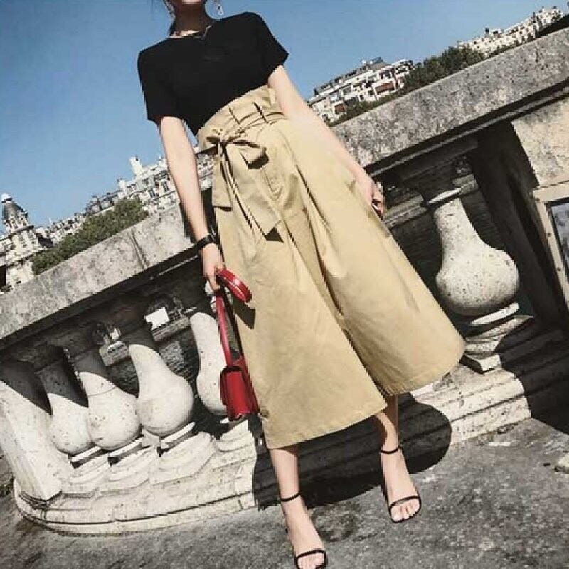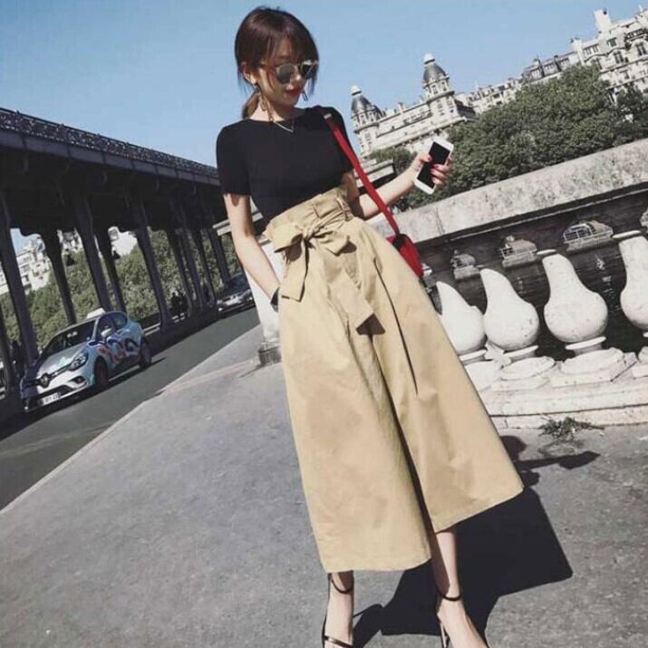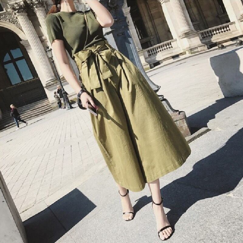 ニット半袖Tシャツ&ハイウエストガウチョパンツセットアップ【DL-2513】