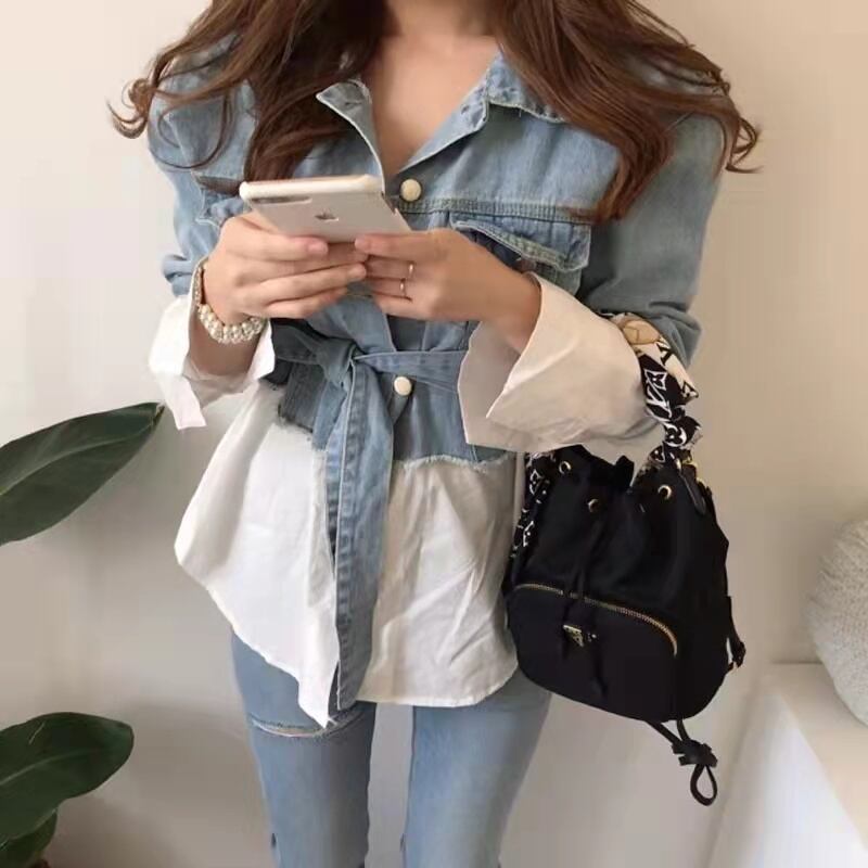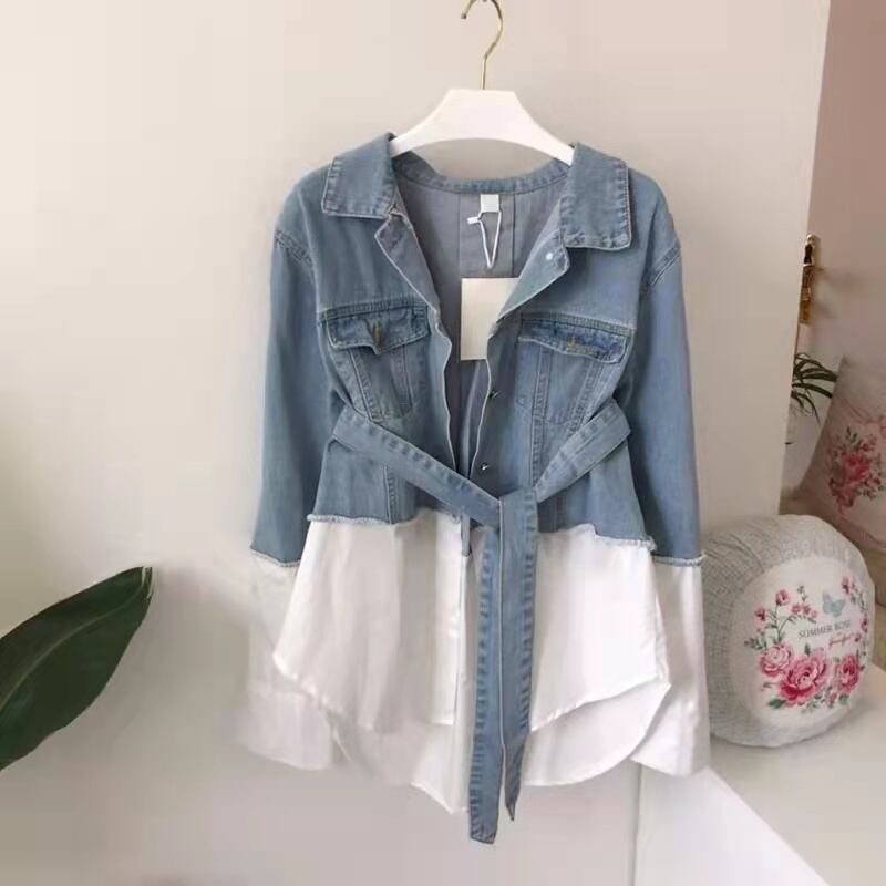 デニム切り替えデザインスタイルコーデしやすい着痩せ効果シャツ・ブラウストップス【DL-2523】