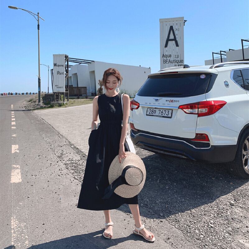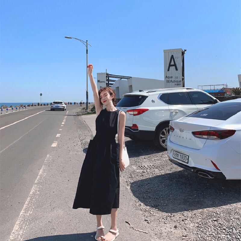 2カラー選択無袖ハイウエストデートワンピースおしゃれワンピース【DL-2528】
