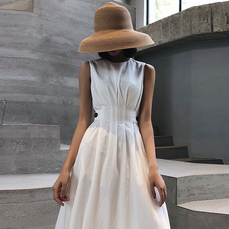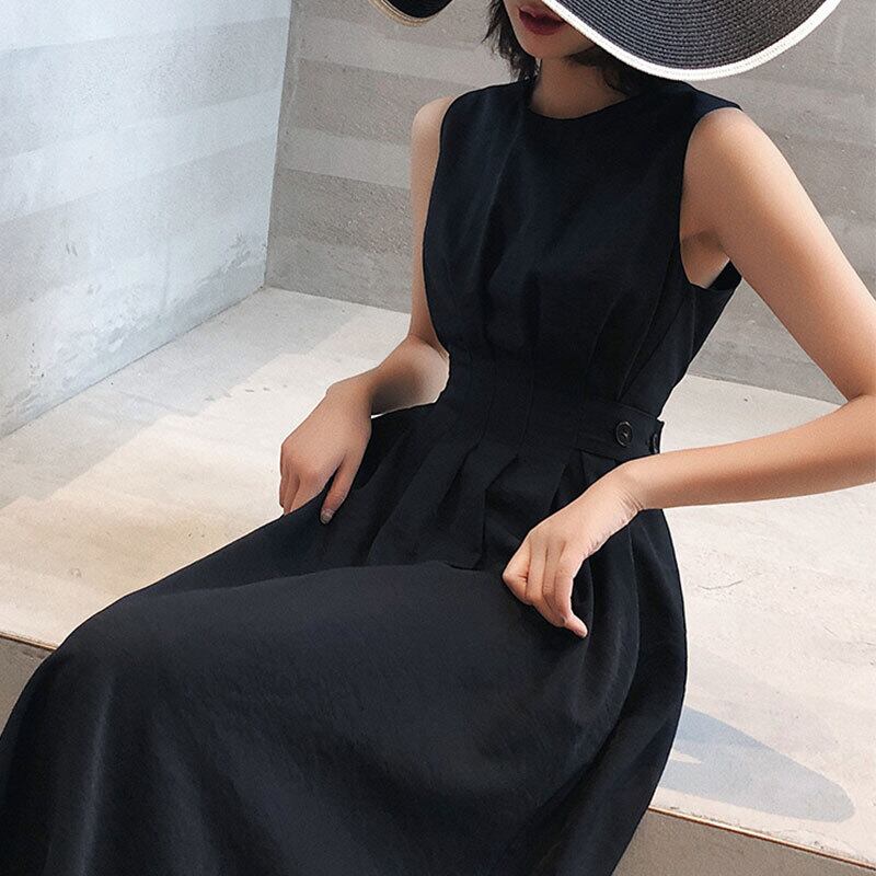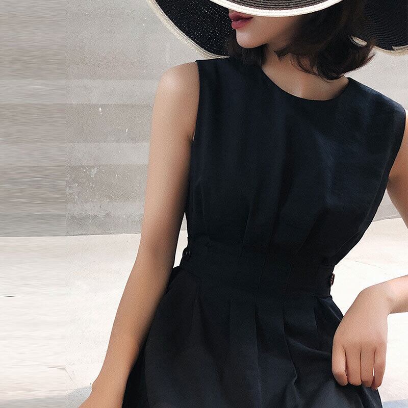 ウエスト締めフレンチスタイル無地デートワンピース優雅【DL-2534】