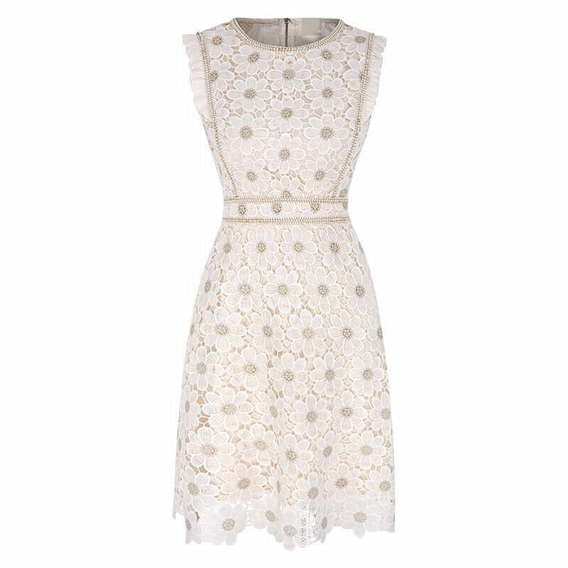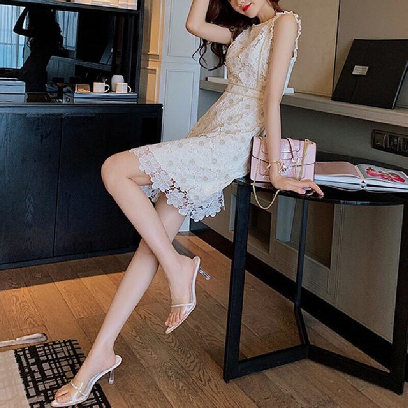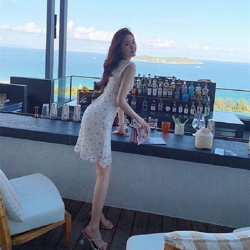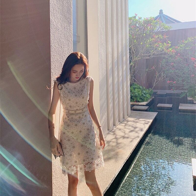 気質無袖レース透かし彫り花柄ワンピース【DL-2545】