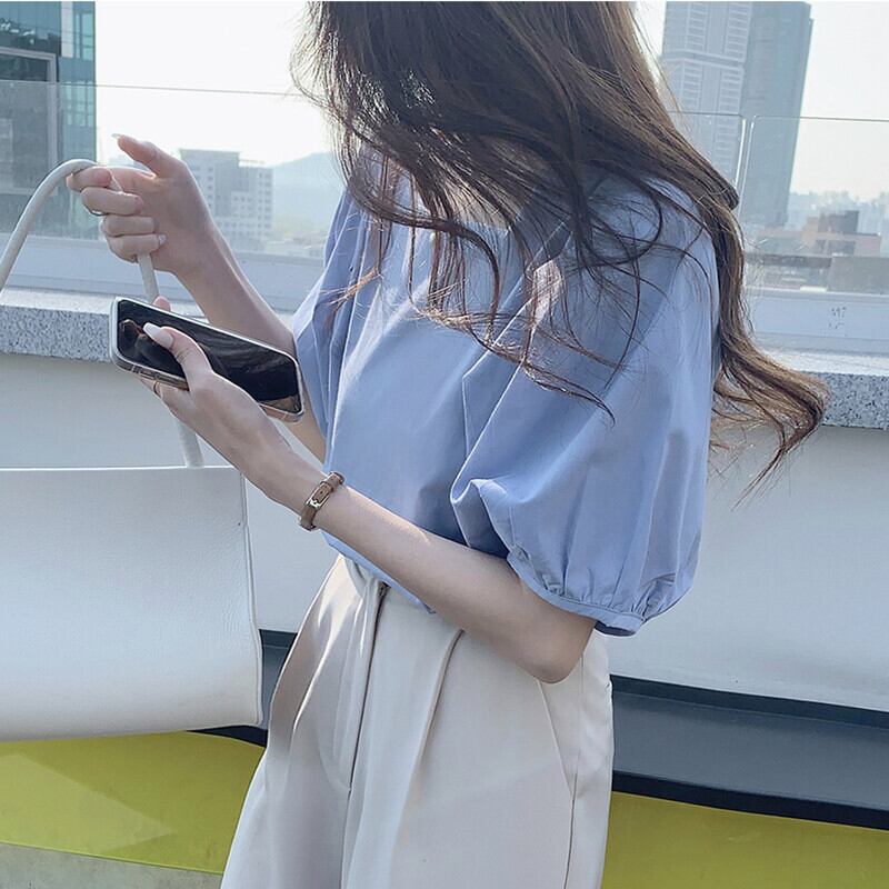 スクエアカラー3カラー選択半袖シンプルブラウストップス【DL-2550】