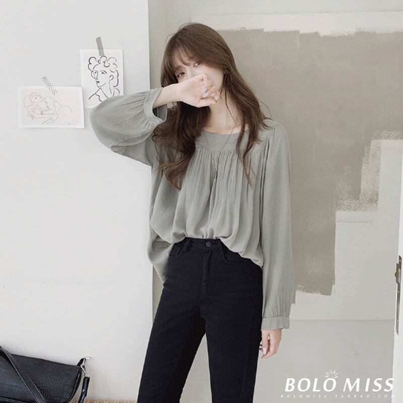 無地ドレープカジュアルブラウストップス【DL-2555】