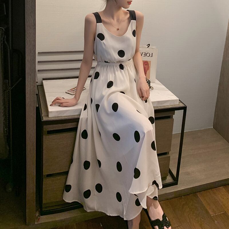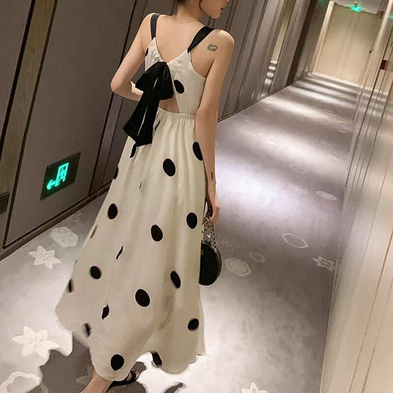 レデイースファッション水玉蝶結びシフォンデートワンピース【DL-2561】