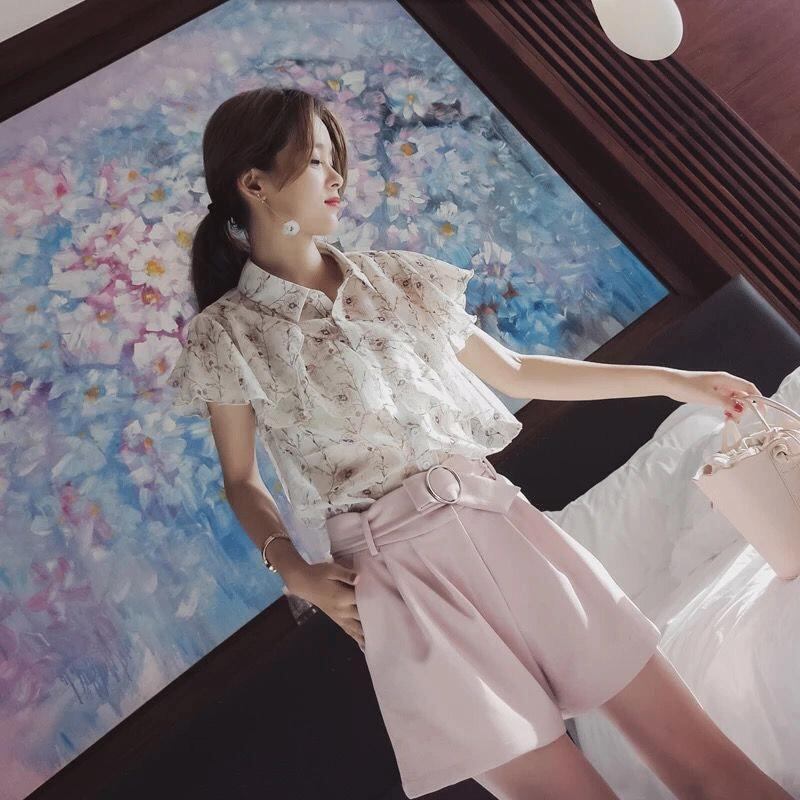 夏新作気質シフォン小柄花柄フリル袖シャツトップス【DL-2568】