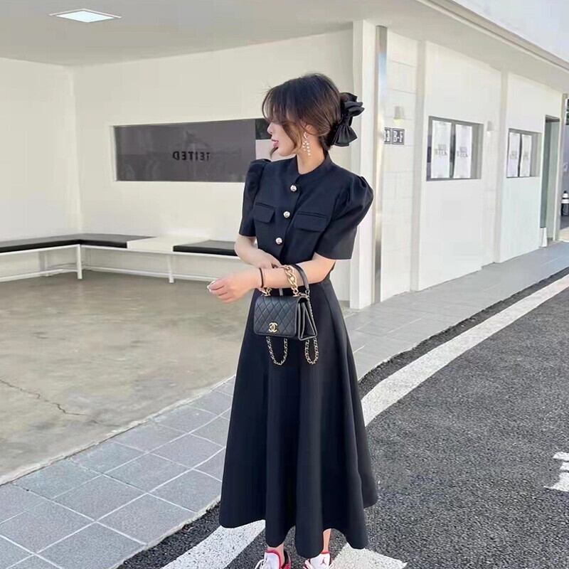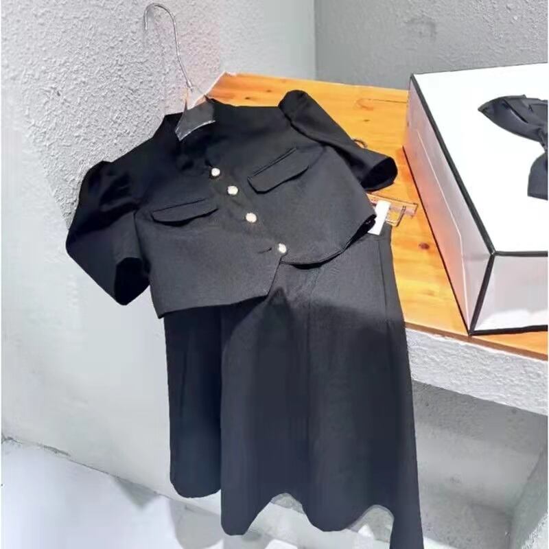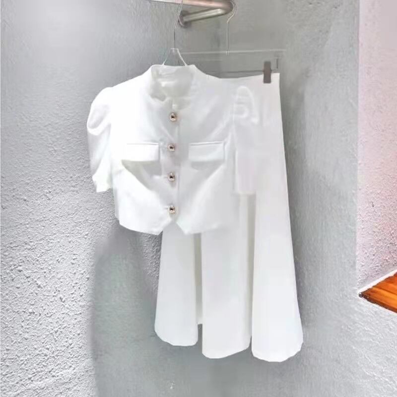 ボタン飾る無地コーデしやすいスーツアウター&無地ハイウエストロングスカートセットアップ【DL-2589】