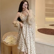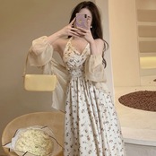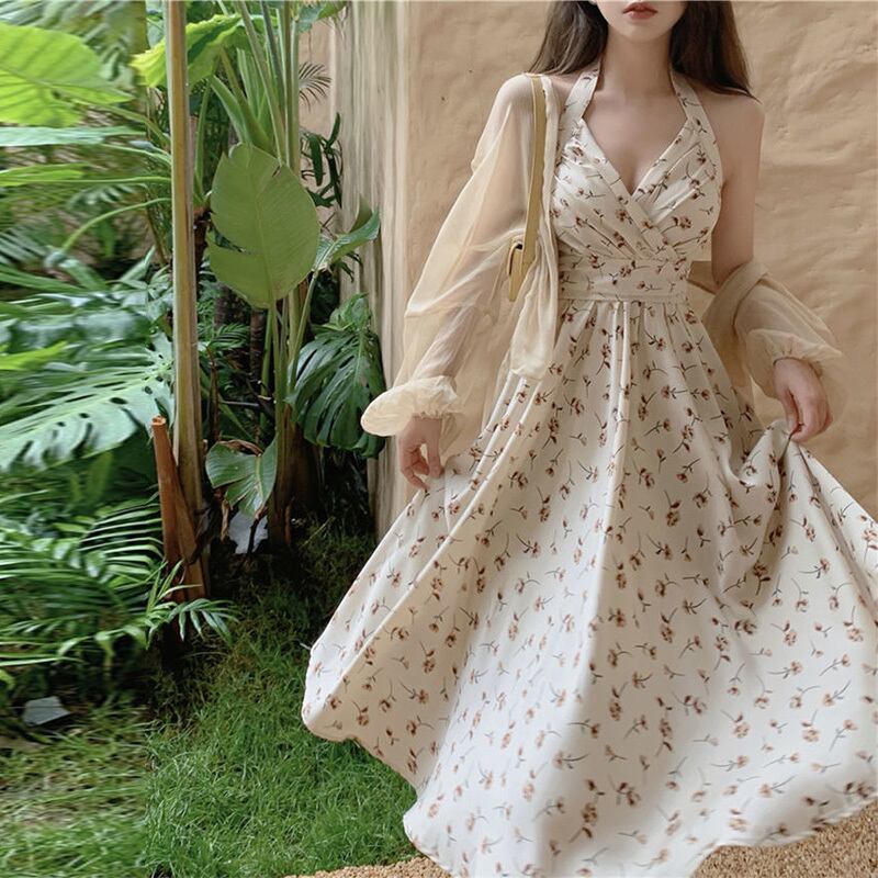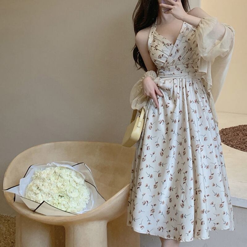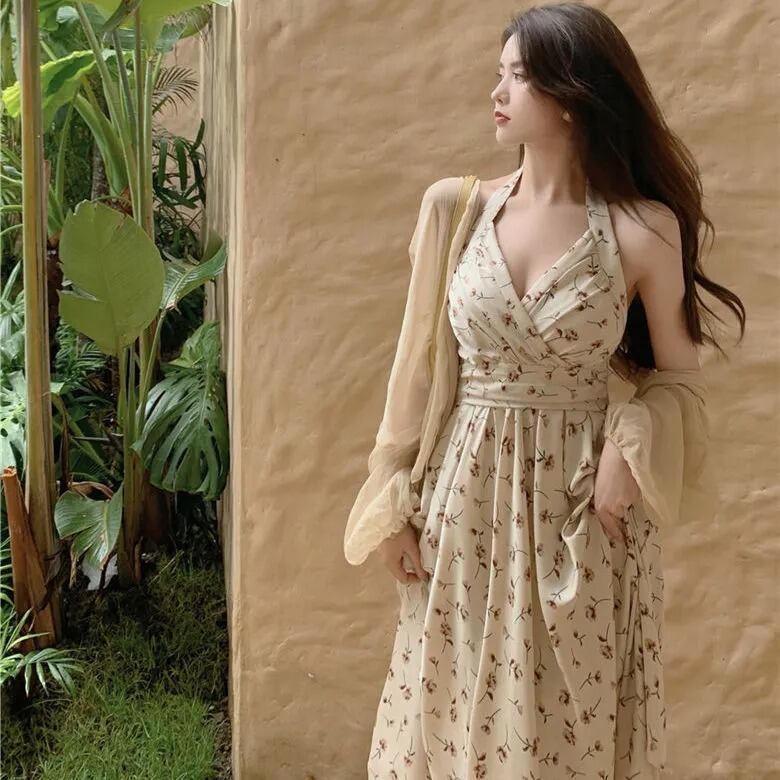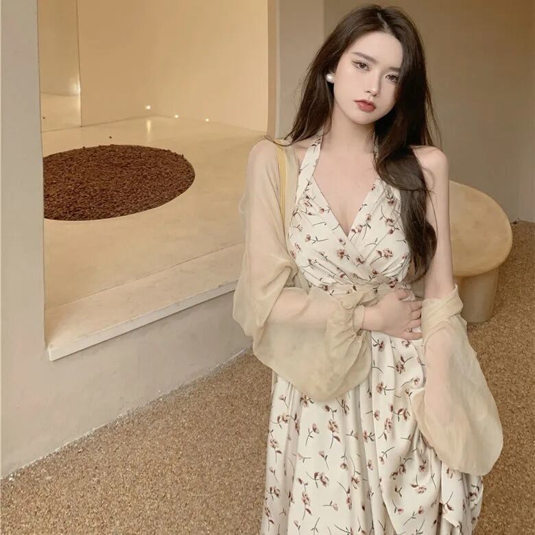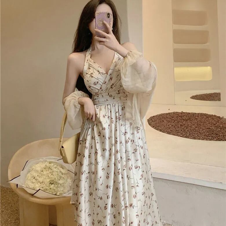 ホルターネック花柄ワンピース&リゾートカーディガンセットアップ【DL-2592】