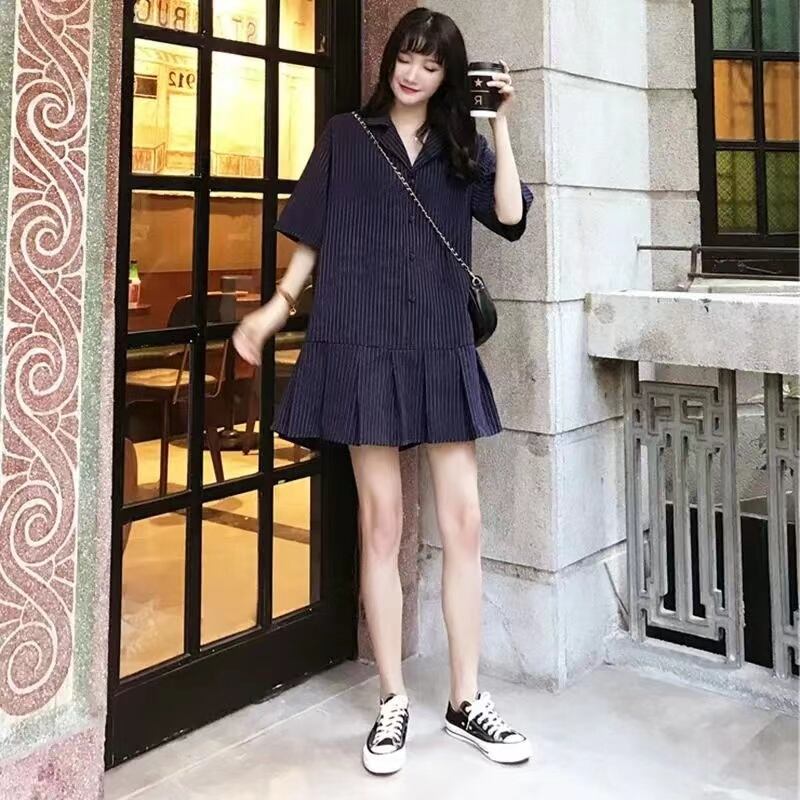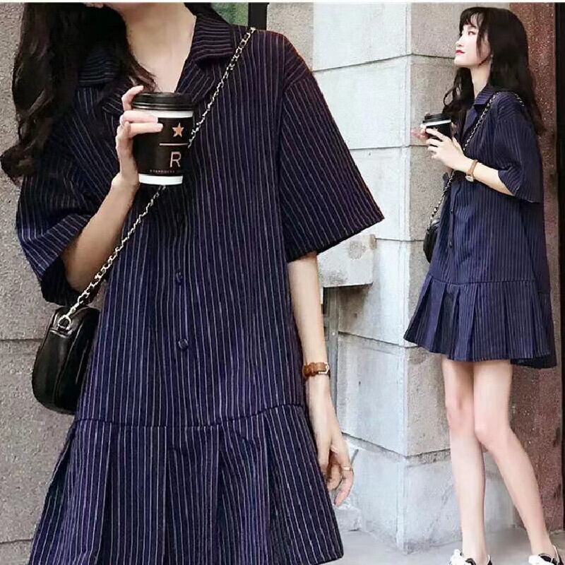 ストライプゆったり着痩せ効果フリル裾スーツカジュアルワンピース【DL-2619】