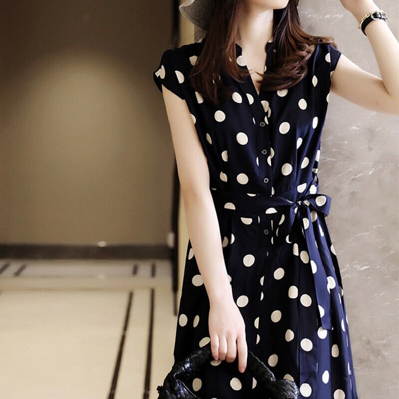 フランスレデイースファッション気質水玉シフォンデザインデートワンピース【DL-2630】