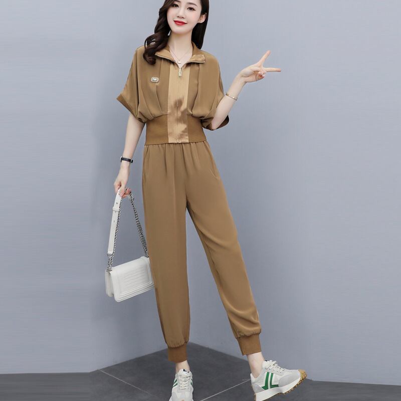 ファッションゆったりカジュアルトップス&無地通勤コーデしやすいパンツセットアップ【DL-2632】