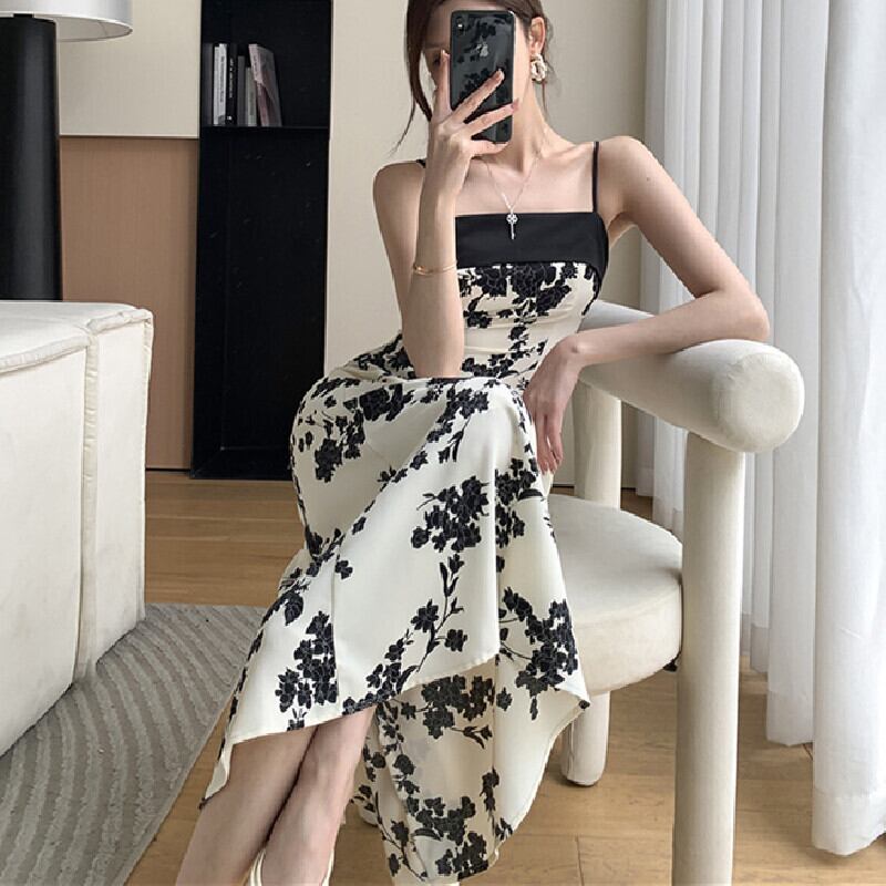 エレガントフランス花柄ゆったりコーデしやすいロングスリップデートワンピース【DL-2650】