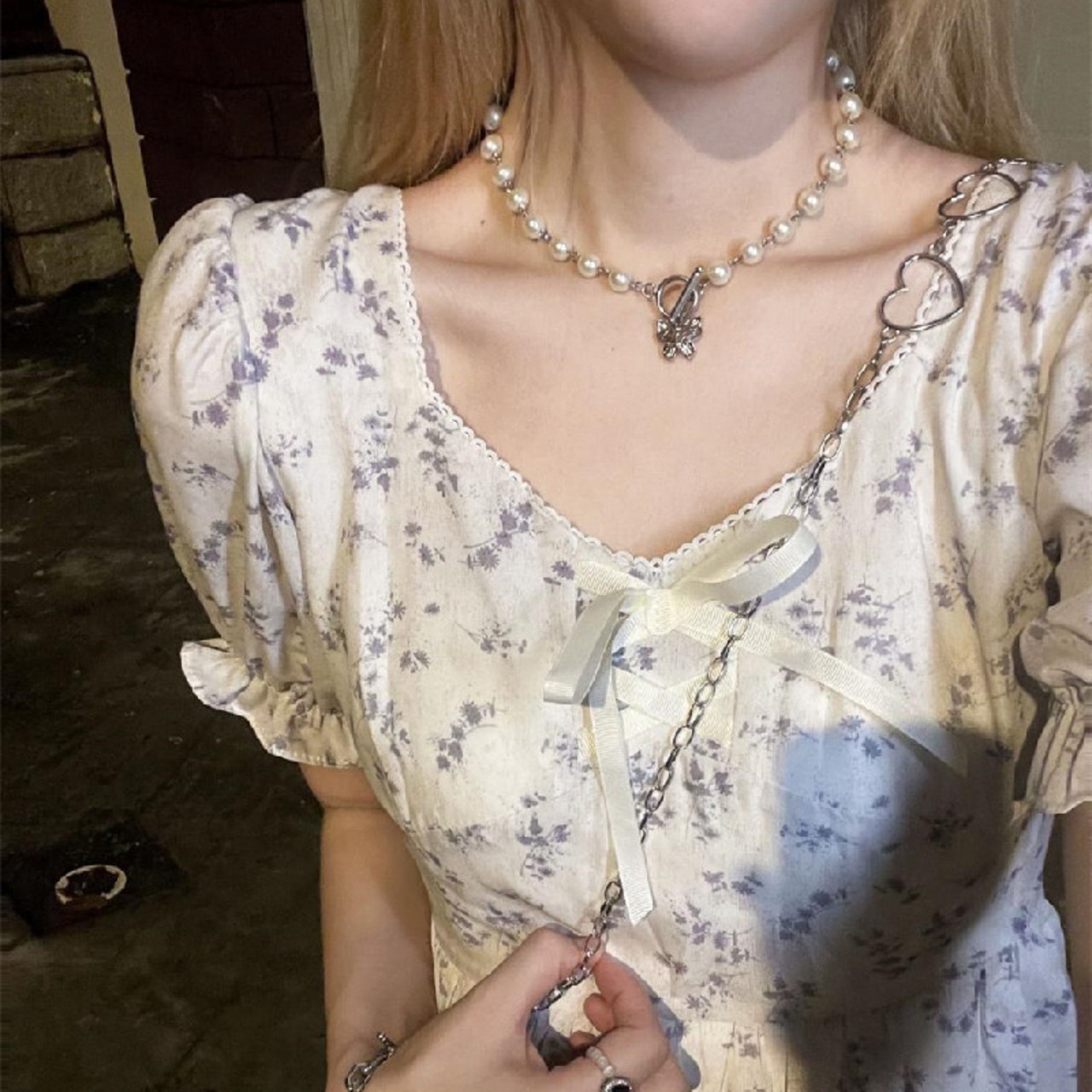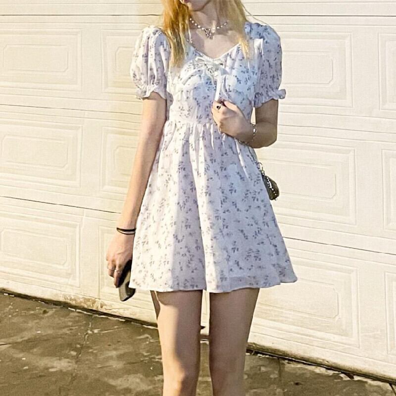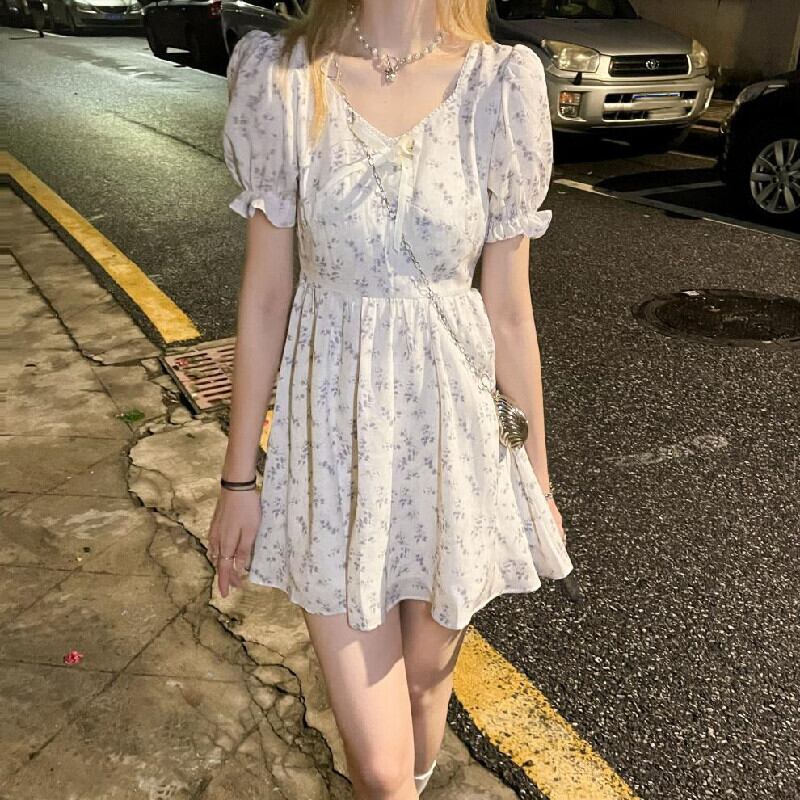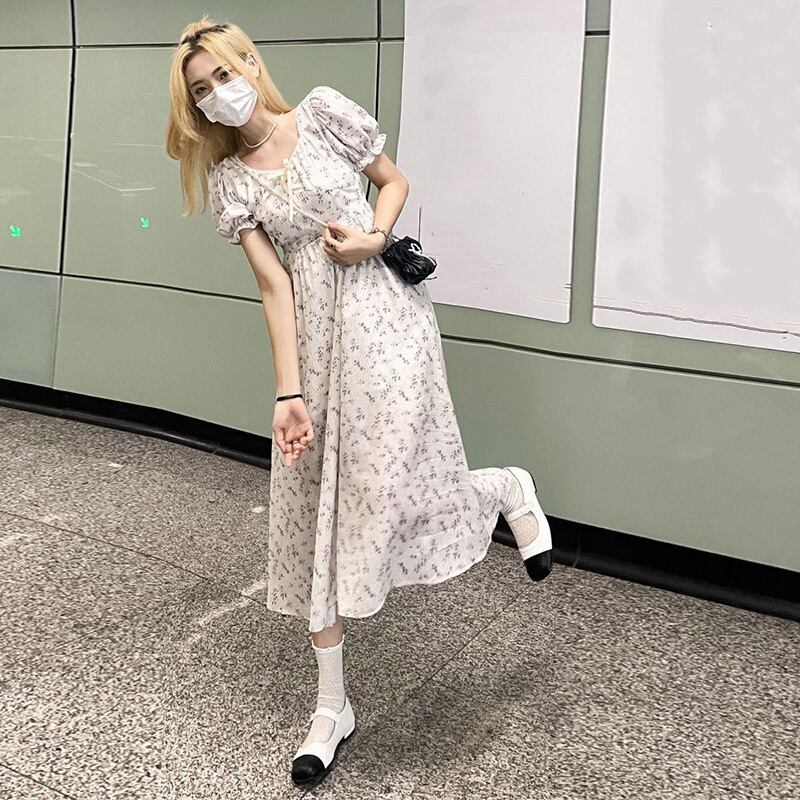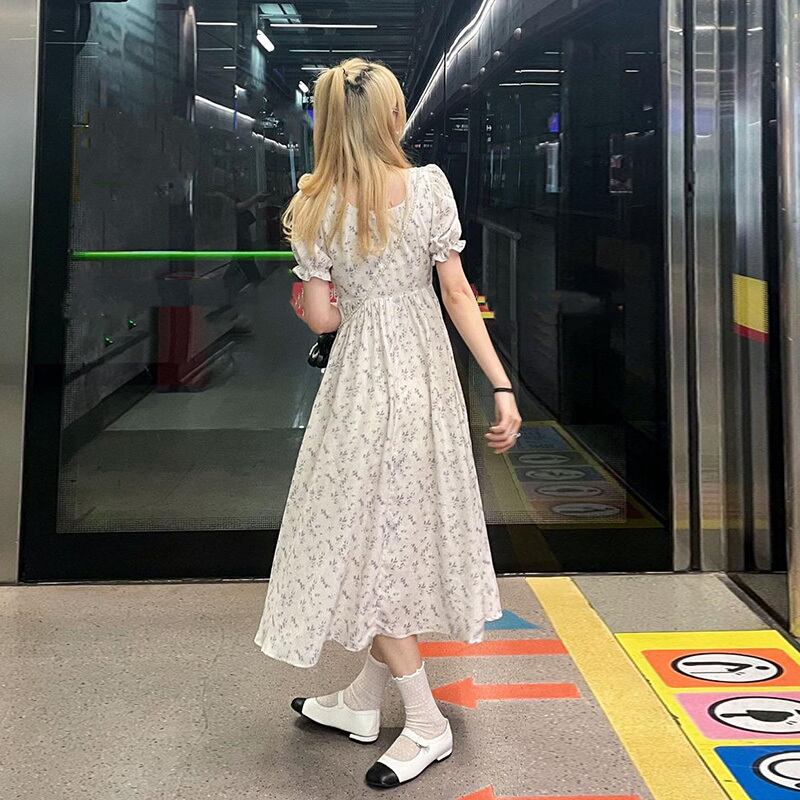 大人可愛い花柄優しいファッションパフスリーブデートワンピース【DL-2651】