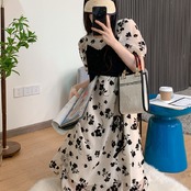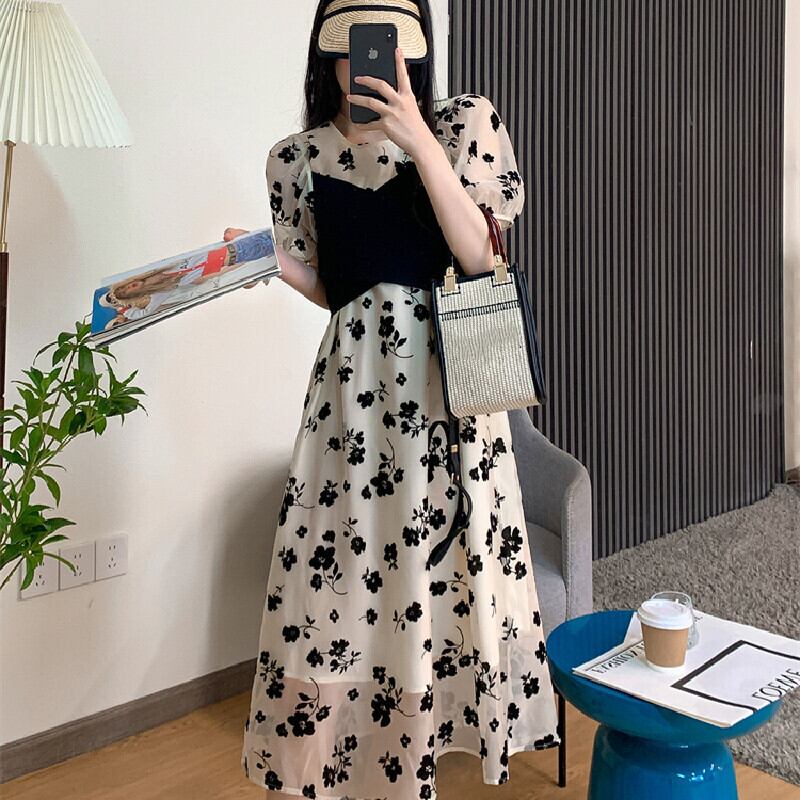 フランスレトロ花柄切り替えデザイン感レデイースファッションデートワンピース【DL-2654】