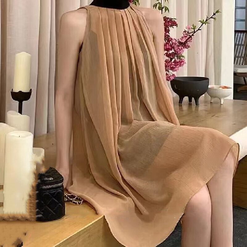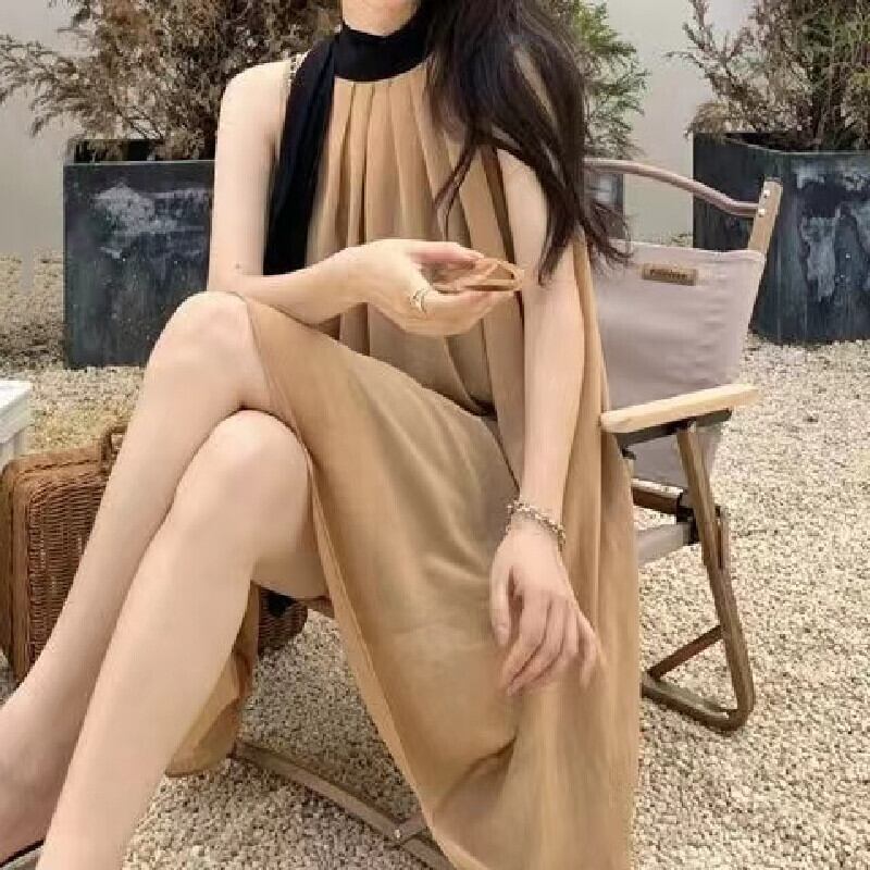 シフォン配色切り替えデザイン感カジュアルワンピース&無地スリップワンピースセットアップ【DL-2660】