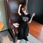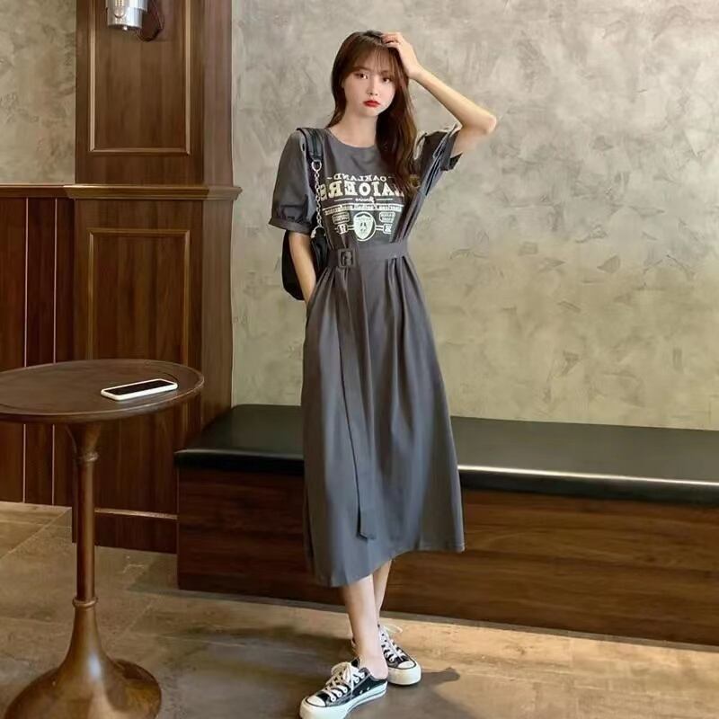 韓国風レデイースファッション半袖パフスリーブロングデートワンピース【DL-2665】